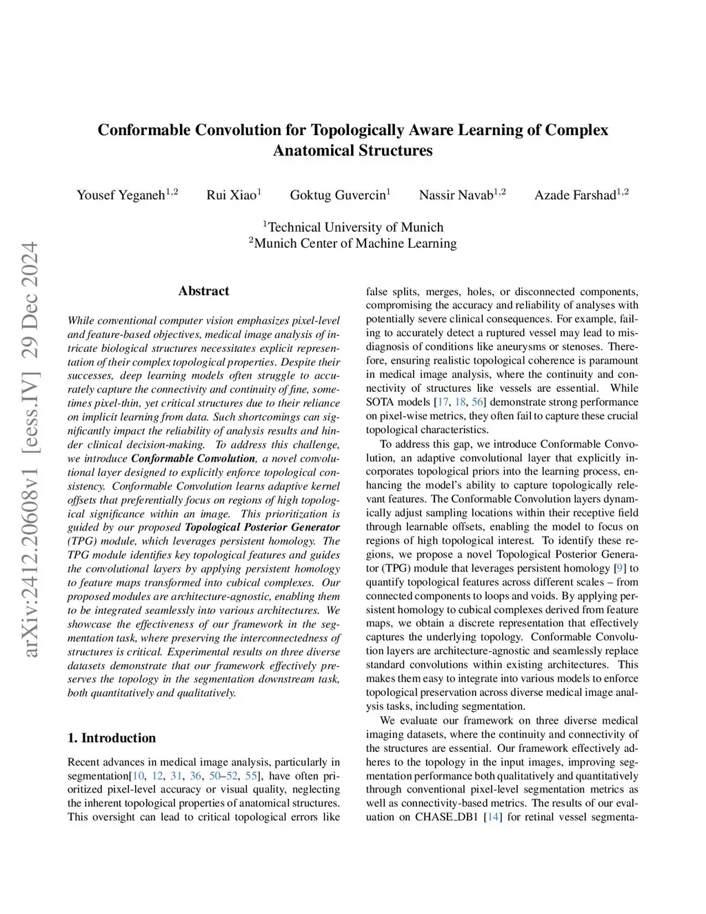While conventional computer vision emphasizes pixel-level and feature-based objectives, medical image analysis of intricate biological structures necessitates explicit representation of their complex topological properties. Despite their successes, deep learning models often struggle to accurately capture the connectivity and continuity of fine, sometimes pixel-thin, yet critical structures due to their reliance on implicit learning from data. Such shortcomings can significantly impact the reliability of analysis results and hinder clinical decision-making. To address this challenge, we introduce Conformable Convolution, a novel convolutional layer designed to explicitly enforce topological consistency. Conformable Convolution learns adaptive kernel offsets that preferentially focus on regions of high topological significance within an image. This prioritization is guided by our proposed Topological Posterior Generator (TPG) module, which leverages persistent homology. The TPG module identifies key topological features and guides the convolutional layers by applying persistent homology to feature maps transformed into cubical complexes. Our proposed modules are architecture-agnostic, enabling them to be integrated seamlessly into various architectures. We showcase the effectiveness of our framework in the segmentation task, where preserving the interconnectedness of structures is critical. Experimental results on three diverse datasets demonstrate that our framework effectively preserves the topology in the segmentation downstream task, both quantitatively and qualitatively.