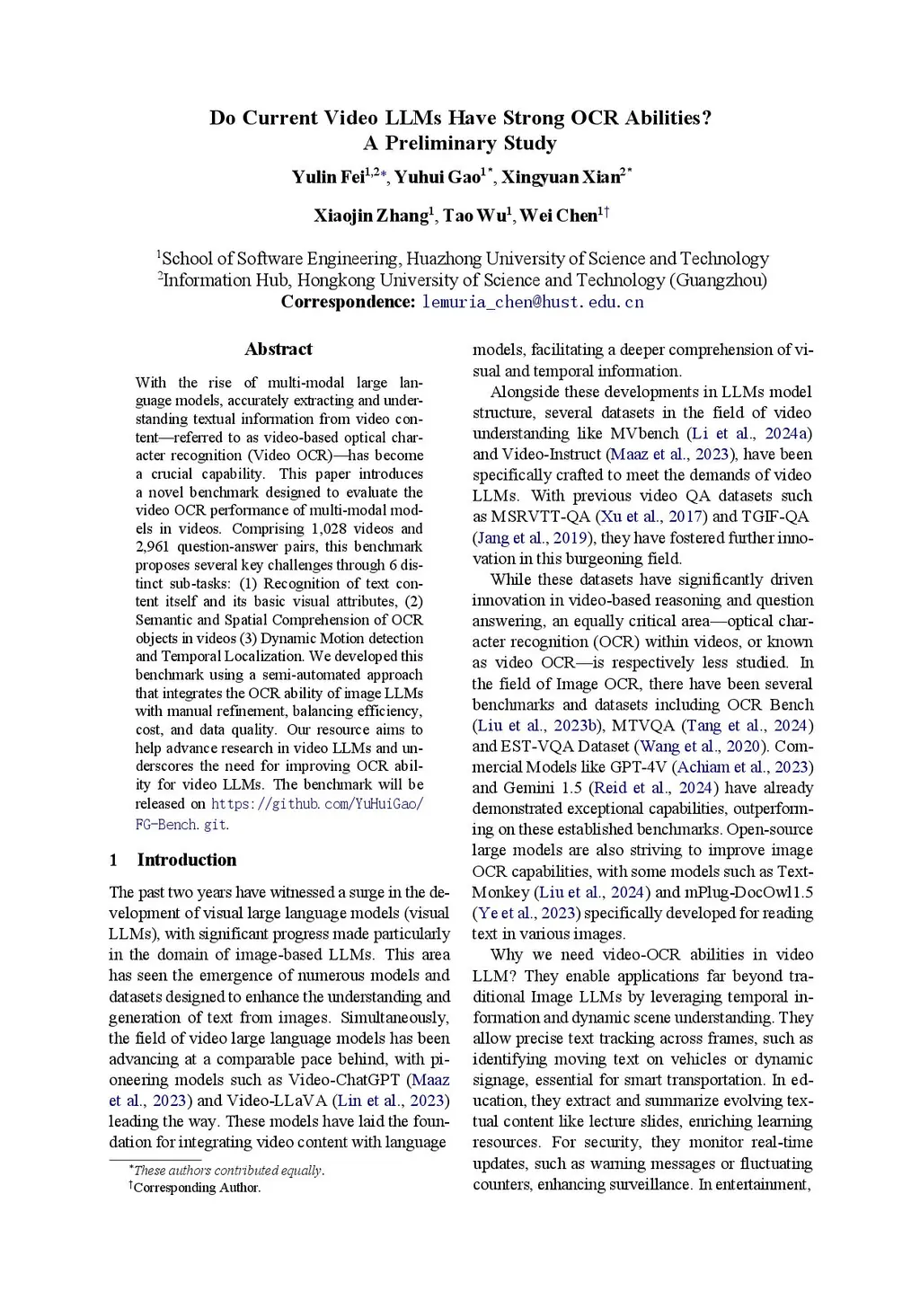 With the rise of multimodal large language models, accurately extracting and understanding textual information from video content, referred to as video based optical character recognition (Video OCR), has become a crucial capability. This paper introduces a novel benchmark designed to evaluate the video OCR performance of multi-modal models in videos. Comprising 1,028 videos and 2,961 question-answer pairs, this benchmark proposes several key challenges through 6 distinct subtasks: (1) Recognition of text content itself and its basic visual attributes, (2)Semantic and Spatial Comprehension of OCR objects in videos (3) Dynamic Motion detection and Temporal Localization. We developed this benchmark using a semi-automated approach that integrates the OCR ability of image LLMs with manual refinement, balancing efficiency, cost, and data quality. Our resource aims to help advance research in video LLMs and underscores the need for improving OCR ability for video LLMs. The benchmark will be released onthis https URL.