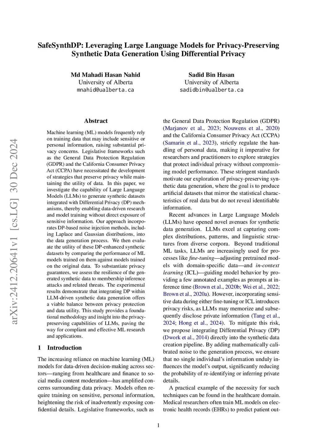 SafeSynthDP: Leveraging Large Language Models for Privacy-Preserving Synthetic Data Generation Using Differential Privacy