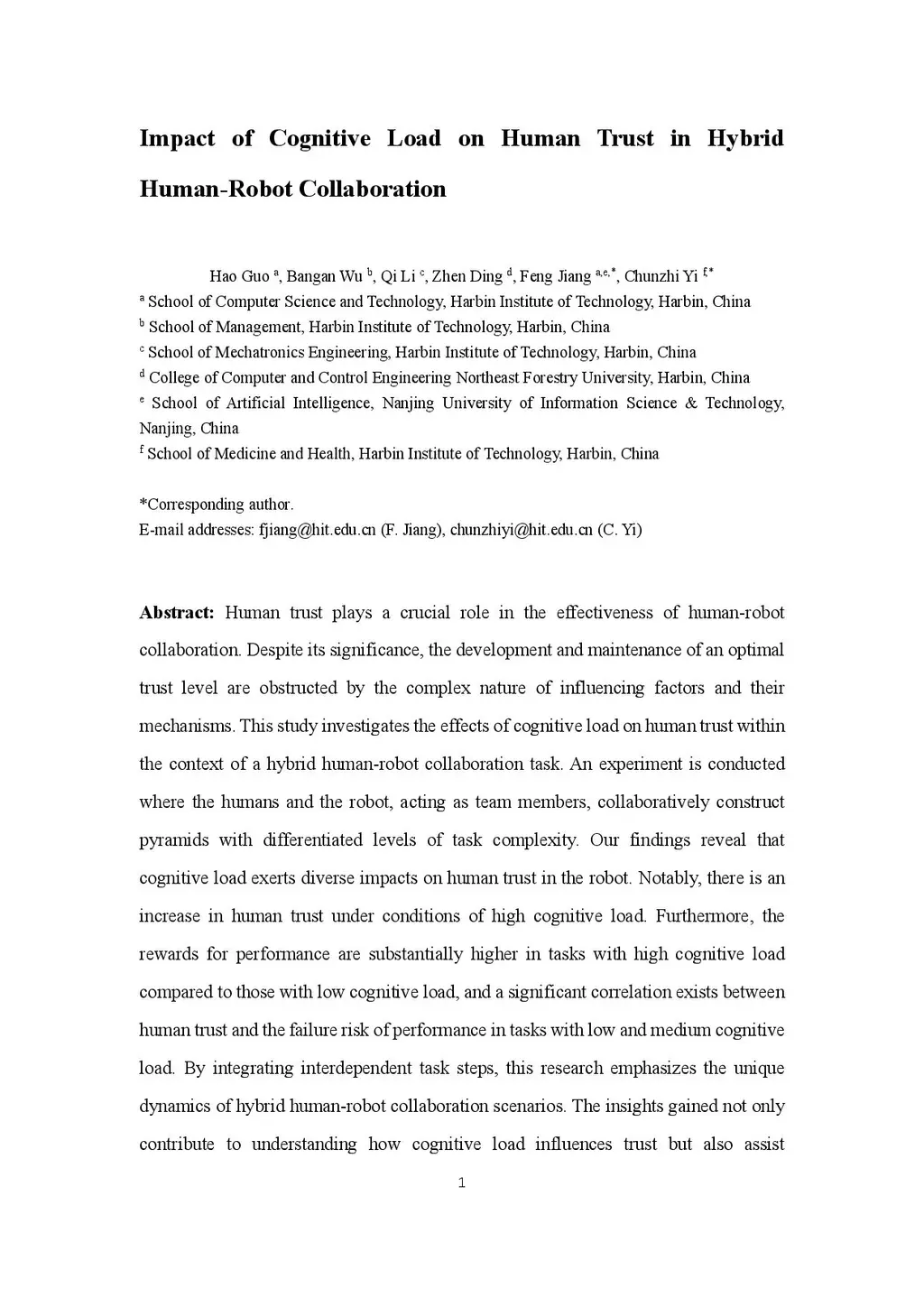 Impact of Cognitive Load on Human Trust in Hybrid Human-Robot Collaboration