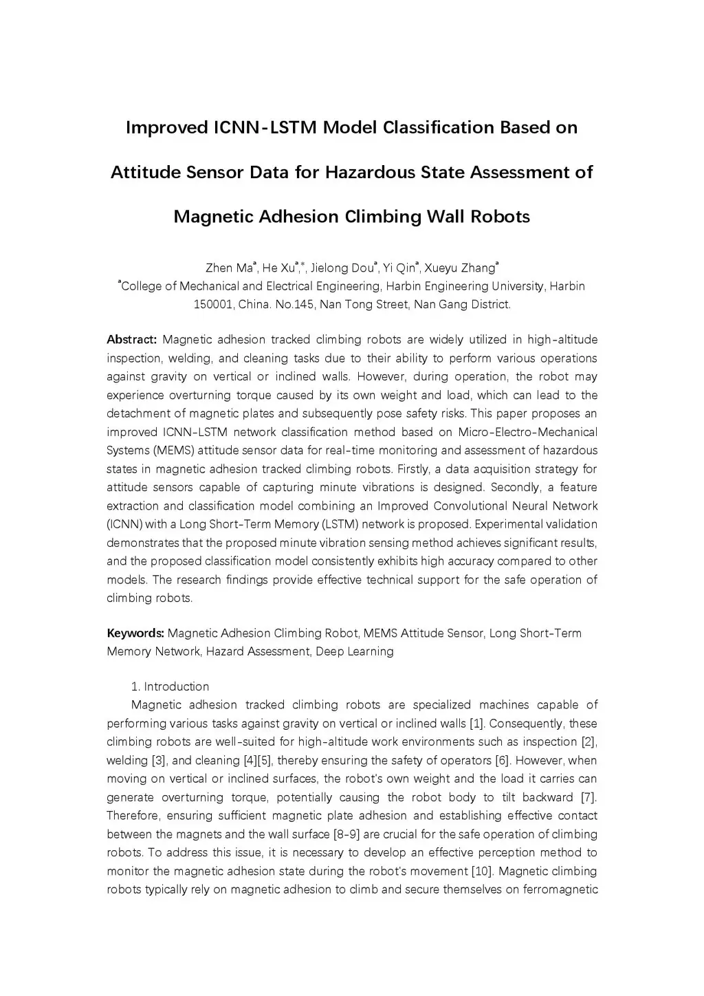 Improved ICNN-LSTM Model Classification Based on Attitude Sensor Data for Hazardous State Assessment of Magnetic Adhesion Climbing Wall Robots