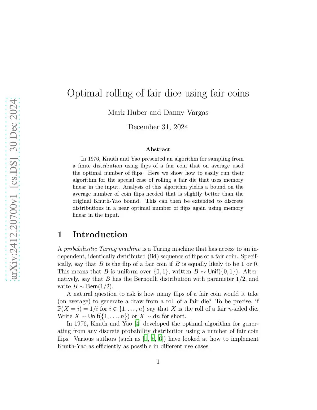 In 1976, Knuth and Yao presented an algorithm for sampling from a finite distribution using flips of a fair coin that on average used the optimal number of flips. Here we show how to easily run their algorithm for the special case of rolling a fair die that uses memory linear in the input. Analysis of this algorithm yields a bound on the average number of coin flips needed that is slightly better than the original Knuth-Yao bound. This can then be extended to discrete distributions in a near optimal number of flips again using memory linear in the input.