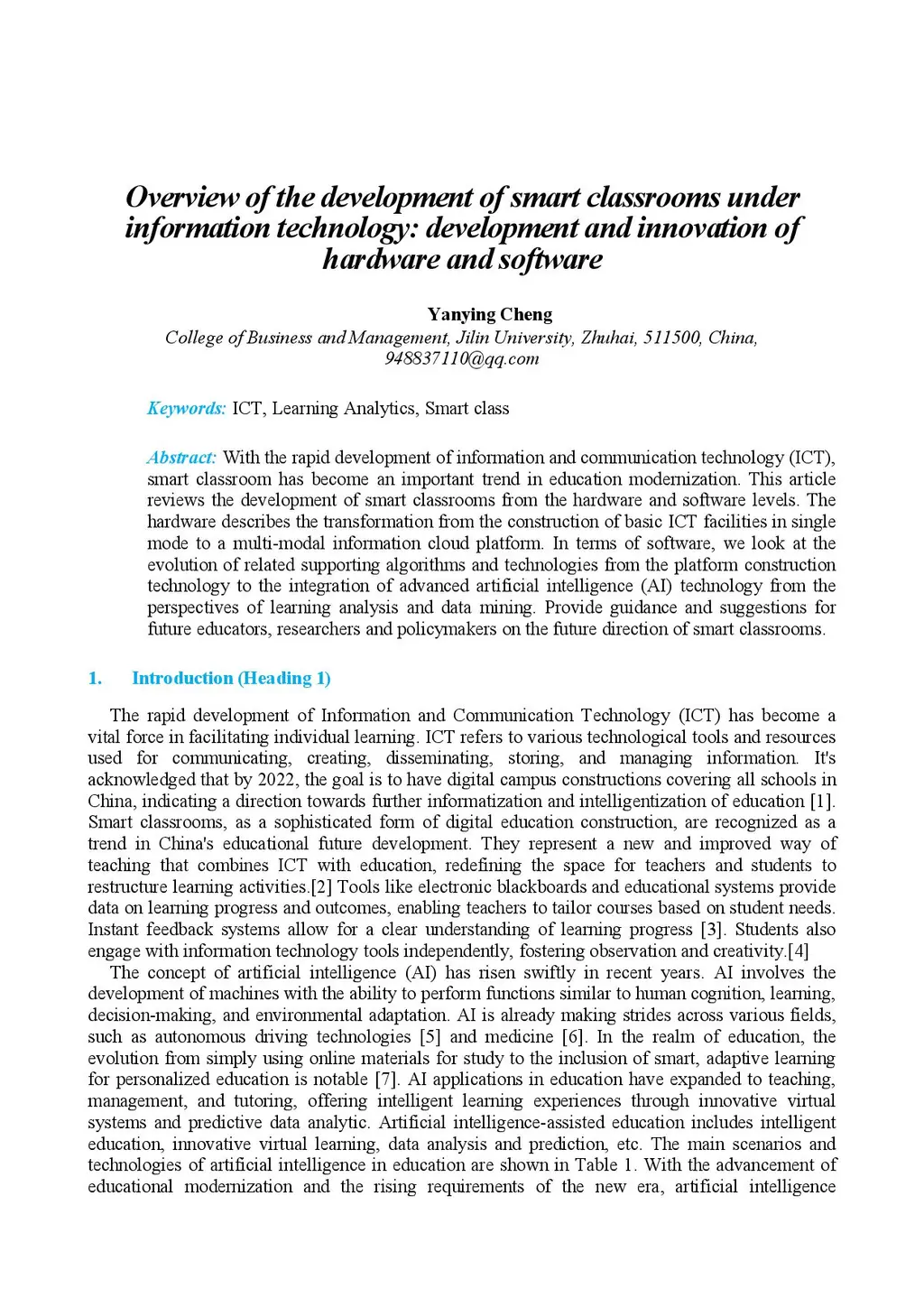 With the rapid development of information and communication technology (ICT), smart classroom has become an important trend in education modernization. This article reviews the development of smart classrooms from the hardware and software levels. The hardware describes the transformation from the construction of basic ICT facilities in single mode to a multi-modal information cloud platform. In terms of software, we look at the evolution of related supporting algorithms and technologies from the platform construction technology to the integration of advanced artificial intelligence (AI) technology from the perspectives of learning analysis and data mining. Provide guidance and suggestions for future educators, researchers and policymakers on the future direction of smart classrooms.