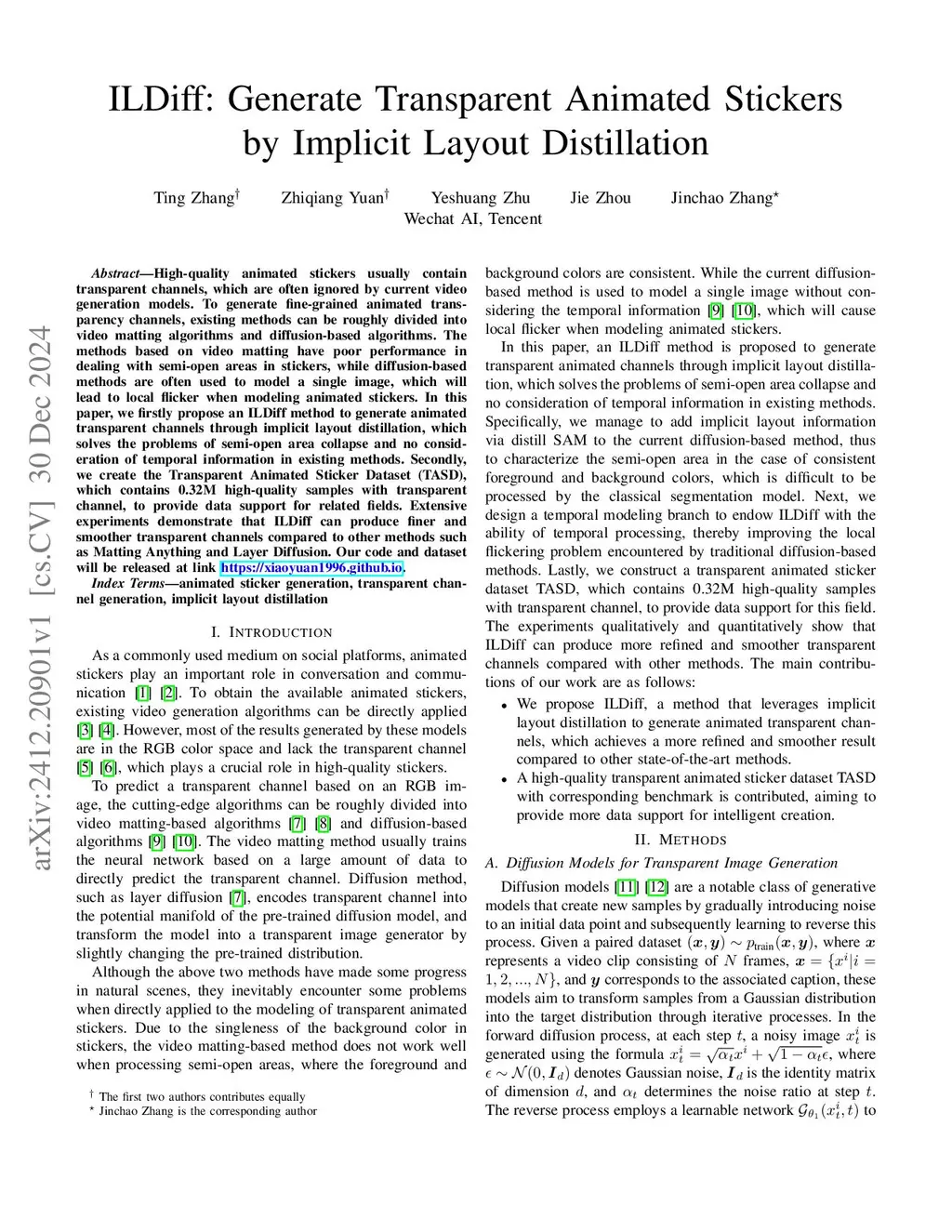 ILDiff: Generate Transparent Animated Stickers by Implicit Layout Distillation