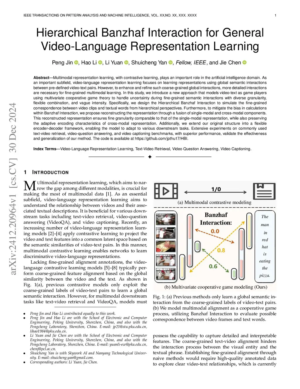 Hierarchical Banzhaf Interaction for General Video-Language Representation Learning