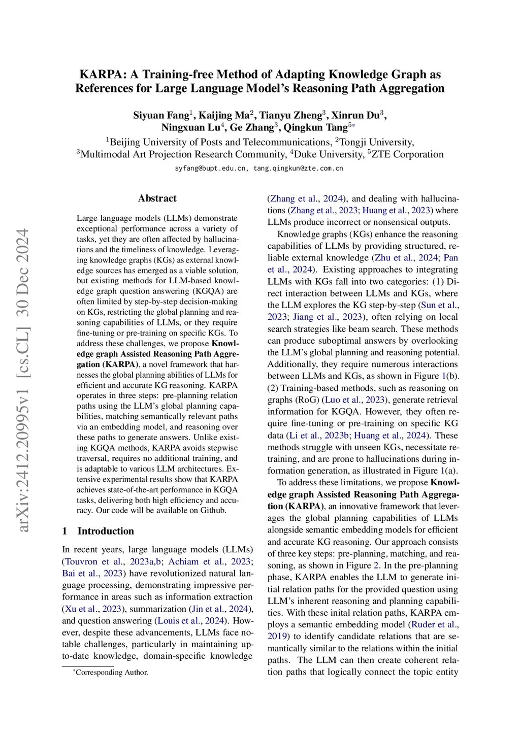 KARPA: A Training-free Method of Adapting Knowledge Graph as References for Large Language Model's Reasoning Path Aggregation
