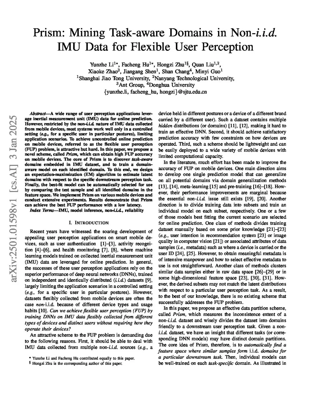 Prism: Mining Task-aware Domains in Non-i.i.d. IMU Data for Flexible User Perception
