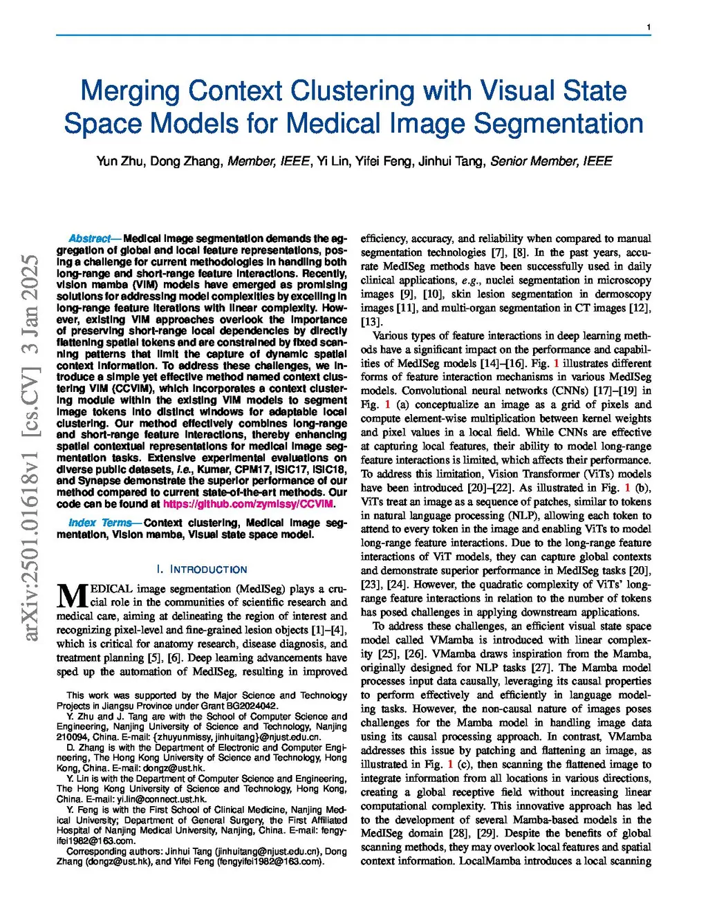 Merging Context Clustering with Visual State Space Models for Medical Image Segmentation
