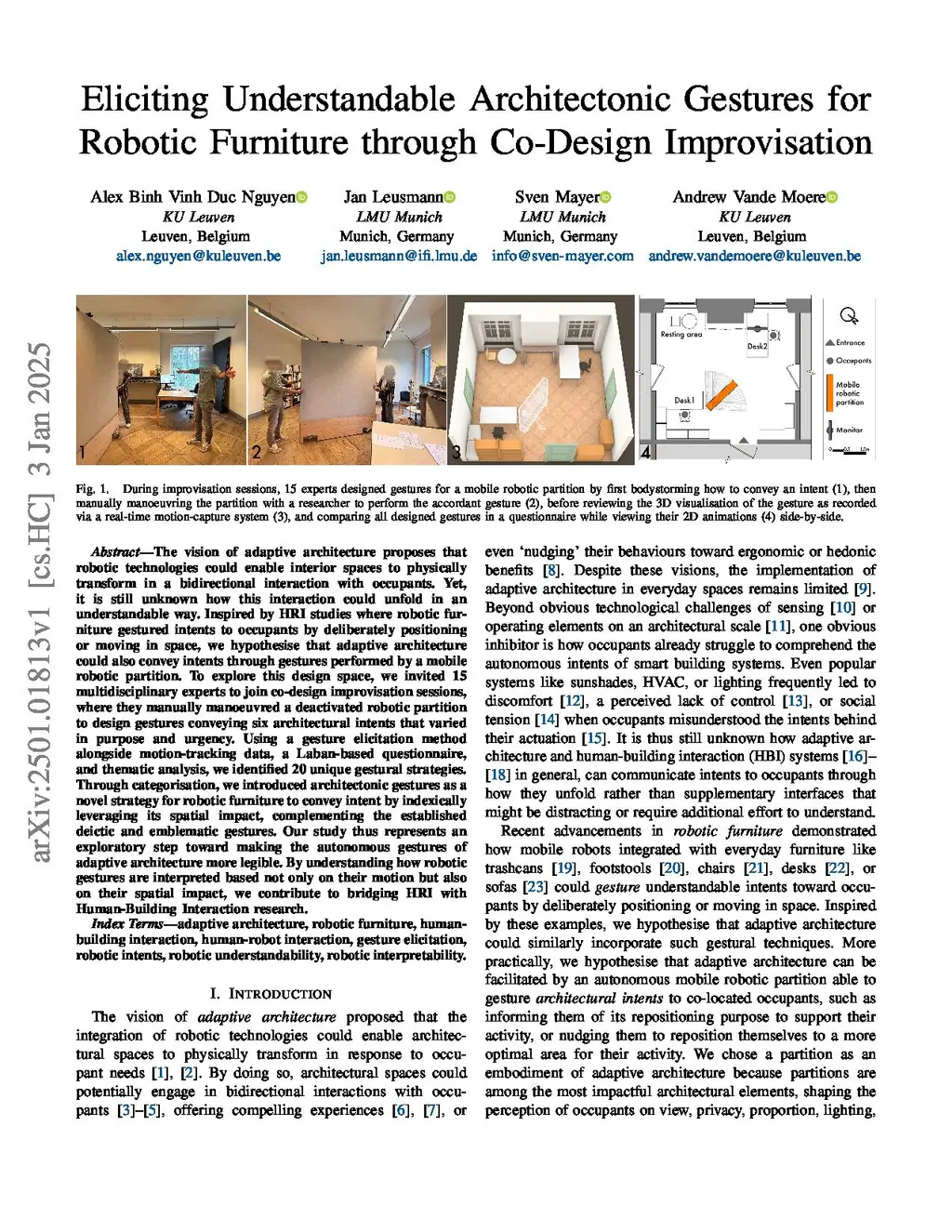 Eliciting Understandable Architectonic Gestures for Robotic Furniture through Co-Design Improvisation