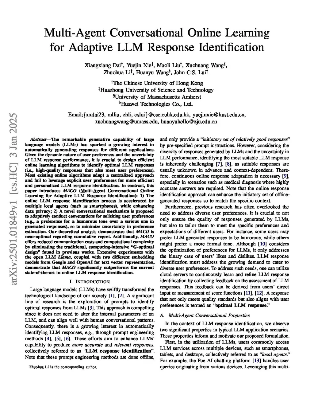 Prompt-based offline methods are commonly used to optimize large language model (LLM) responses, but evaluating these responses is computationally intensive and often fails to accommodate diverse response styles. This study introduces a novel online evaluation framework that employs a multi-agent conversational bandit model to select optimal responses while aligning with user preferences dynamically. To tackle challenges such as high-dimensional features, large response sets, adaptive conversational needs, and multi-device access, we propose MACO, Multi-Agent Conversational Online Learning, which comprises two key components: (1) \texttt{MACO-A}: Executed by local agents, it employs an online elimination mechanism to filter out low-quality responses. (2) \texttt{MACO-S}: Executed by the cloud server, it adaptively adjusts selection strategies based on aggregated preference data. An adaptive preference mechanism triggers asynchronous conversations to enhance alignment efficiency. Theoretical analysis demonstrates that MACO achieves near-optimal regret bounds, matching state-of-the-art performance in various degenerate cases. Extensive experiments utilizing Google and OpenAI text embedding models on the real-world datasets with different response styles, combined with Llama and GPT-4o, show that MACO consistently outperforms baseline methods by at least 8.29\% across varying response set sizes and numbers of agents.