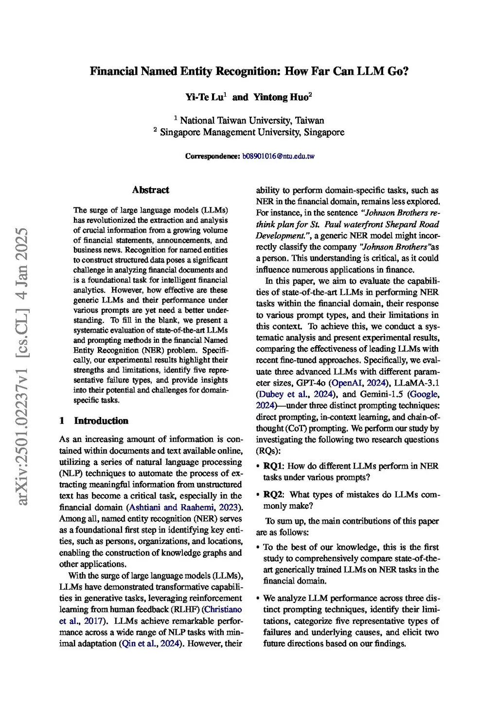 Financial Named Entity Recognition: How Far Can LLM Go?