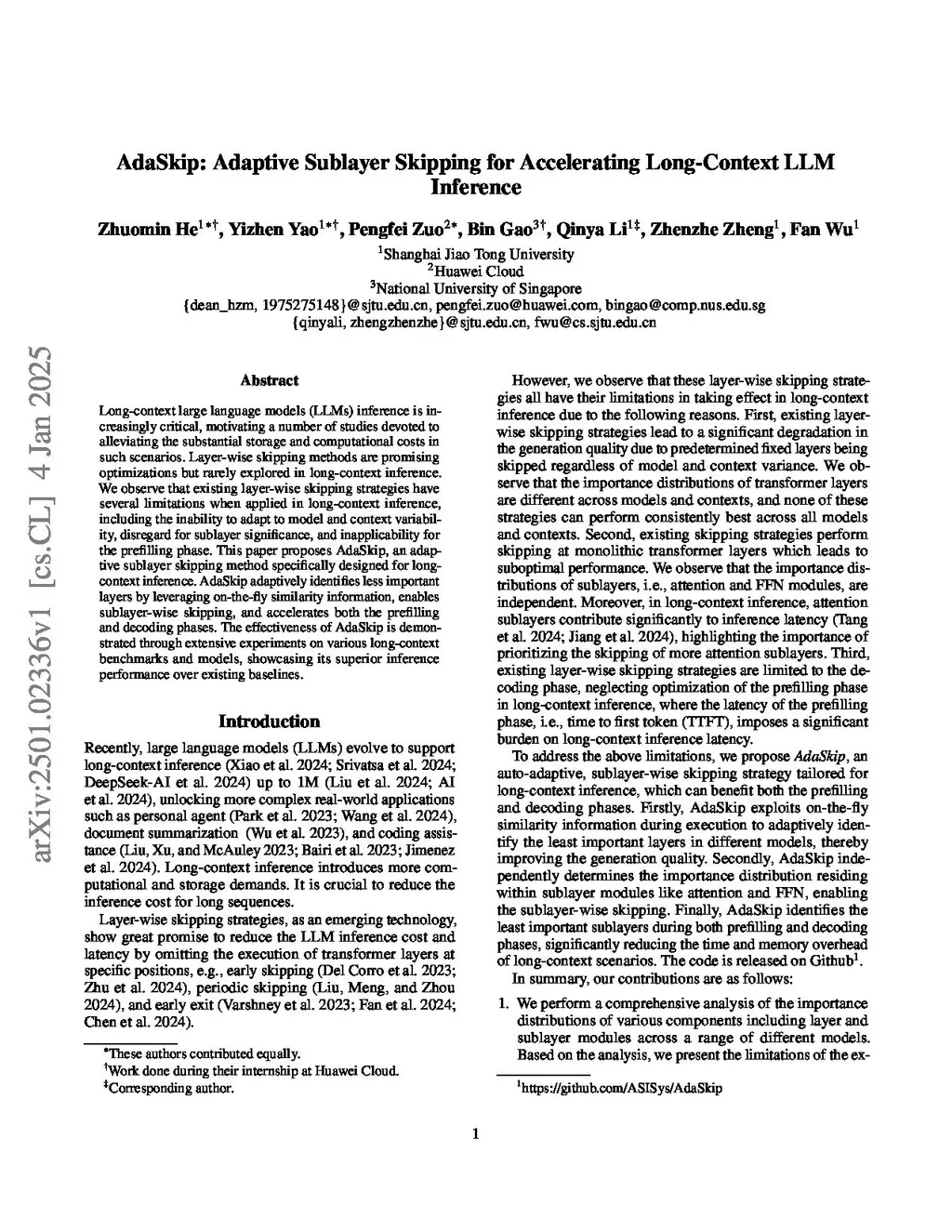 AdaSkip: Adaptive Sublayer Skipping for Accelerating Long-Context LLM Inference
