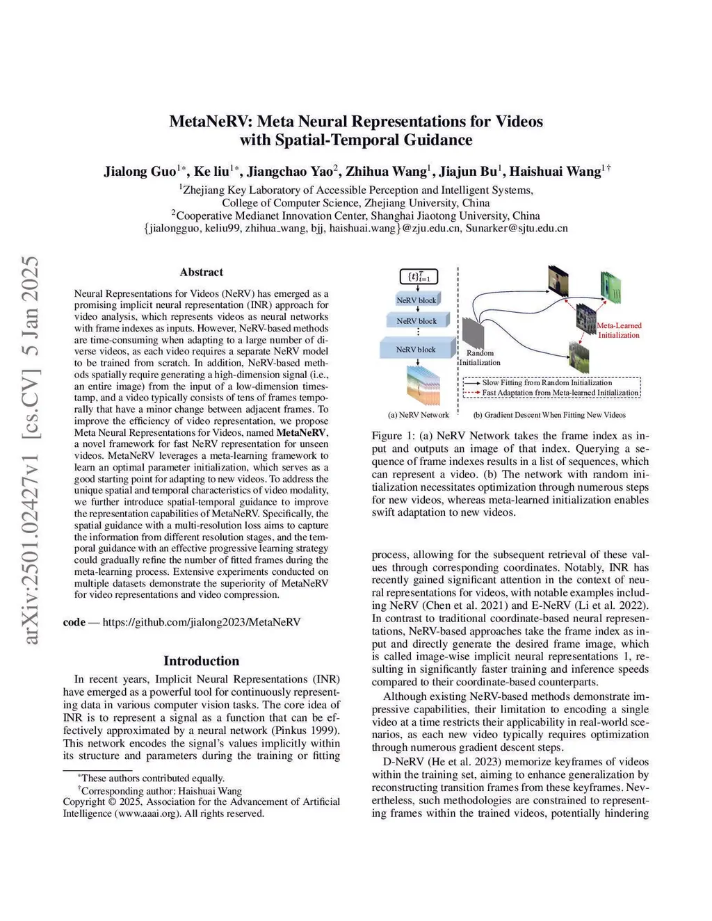 MetaNeRV: Meta Neural Representations for Videos with Spatial-Temporal Guidance