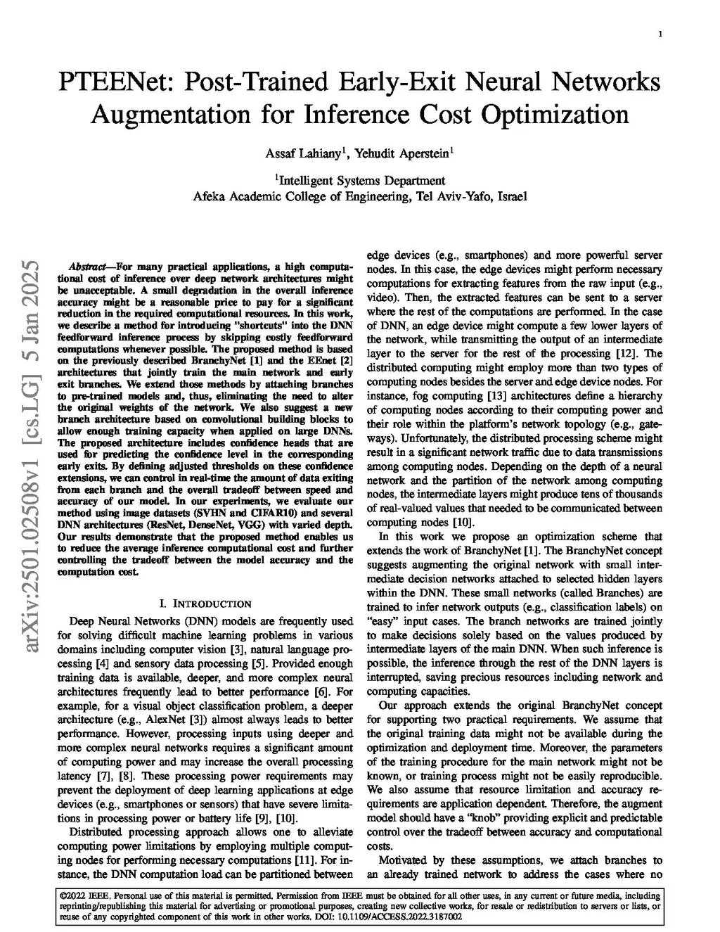For many practical applications, a high computational cost of inference over deep network architectures might be unacceptable. A small degradation in the overall inference accuracy might be a reasonable price to pay for a significant reduction in the required computational resources. In this work, we describe a method for introducing "shortcuts" into the DNN feedforward inference process by skipping costly feedforward computations whenever possible. The proposed method is based on the previously described BranchyNet (Teerapittayanon et al., 2016) and the EEnet (Demir, 2019) architectures that jointly train the main network and early exit branches. We extend those methods by attaching branches to pre-trained models and, thus, eliminating the need to alter the original weights of the network. We also suggest a new branch architecture based on convolutional building blocks to allow enough training capacity when applied on large DNNs. The proposed architecture includes confidence heads that are used for predicting the confidence level in the corresponding early exits. By defining adjusted thresholds on these confidence extensions, we can control in real-time the amount of data exiting from each branch and the overall tradeoff between speed and accuracy of our model. In our experiments, we evaluate our method using image datasets (SVHN and CIFAR10) and several DNN architectures (ResNet, DenseNet, VGG) with varied depth. Our results demonstrate that the proposed method enables us to reduce the average inference computational cost and further controlling the tradeoff between the model accuracy and the computation cost.