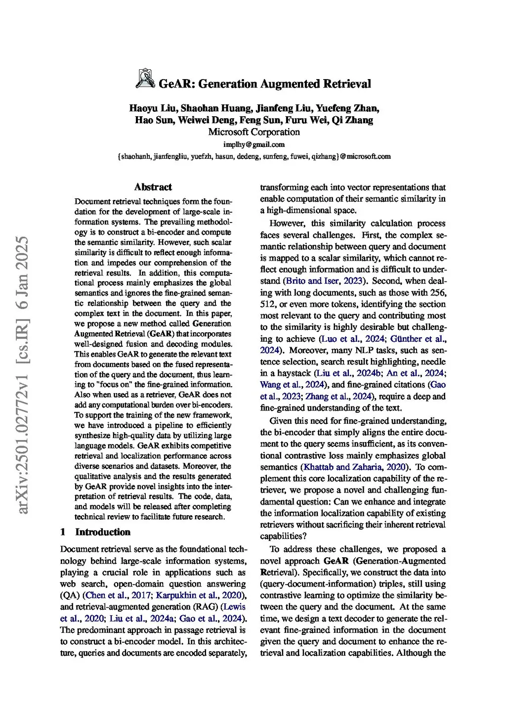 GeAR: Generation Augmented Retrieval
