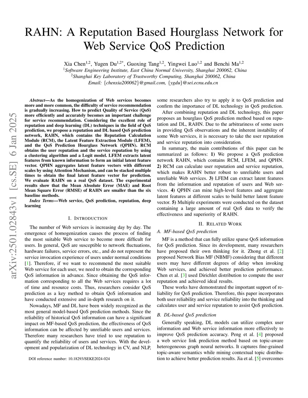 RAHN: A Reputation Based Hourglass Network for Web Service QoS Prediction
