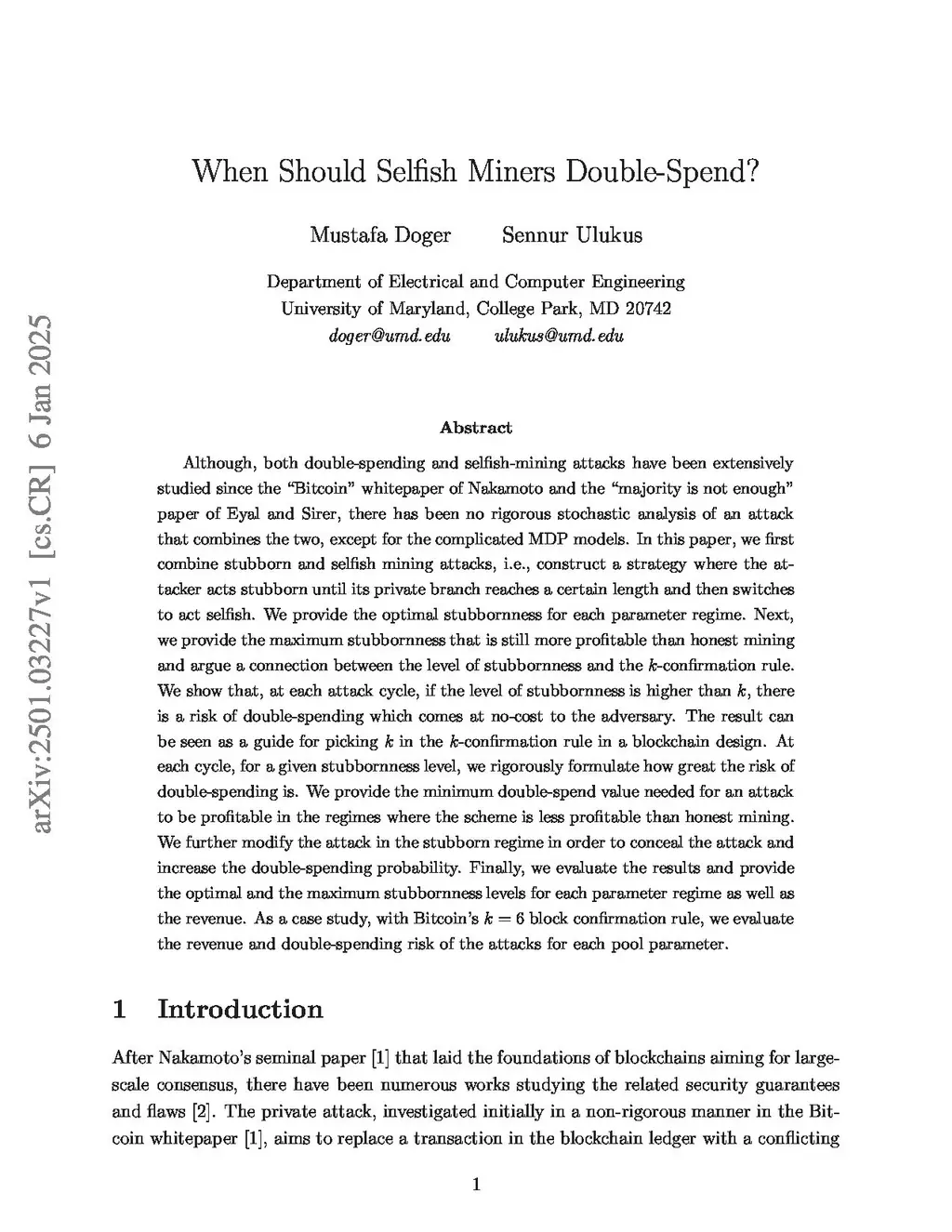 Conventional double-spending attack models ignore the revenue losses stemming from the orphan blocks. On the other hand, selfish mining literature usually ignores the chance of the attacker to double-spend at no-cost in each attack cycle. In this paper, we give a rigorous stochastic analysis of an attack where the goal of the adversary is to double-spend while mining selfishly. To do so, we first combine stubborn and selfish mining attacks, i.e., construct a strategy where the attacker acts stubborn until its private branch reaches a certain length and then switches to act selfish. We provide the optimal stubbornness for each parameter regime. Next, we provide the maximum stubbornness that is still more profitable than honest mining and argue a connection between the level of stubbornness and the -confirmation rule. We show that, at each attack cycle, if the level of stubbornness is higher than , the adversary gets a free shot at double-spending. At each cycle, for a given stubbornness level, we rigorously formulate how great the probability of double-spending is. We further modify the attack in the stubborn regime in order to conceal the attack and increase the double-spending probability.
