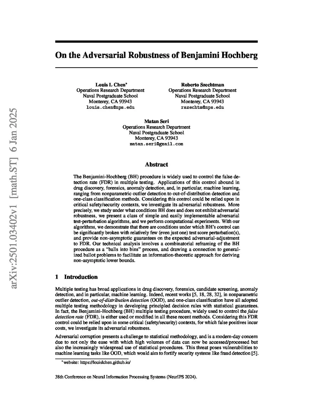 On the Adversarial Robustness of Benjamini Hochberg