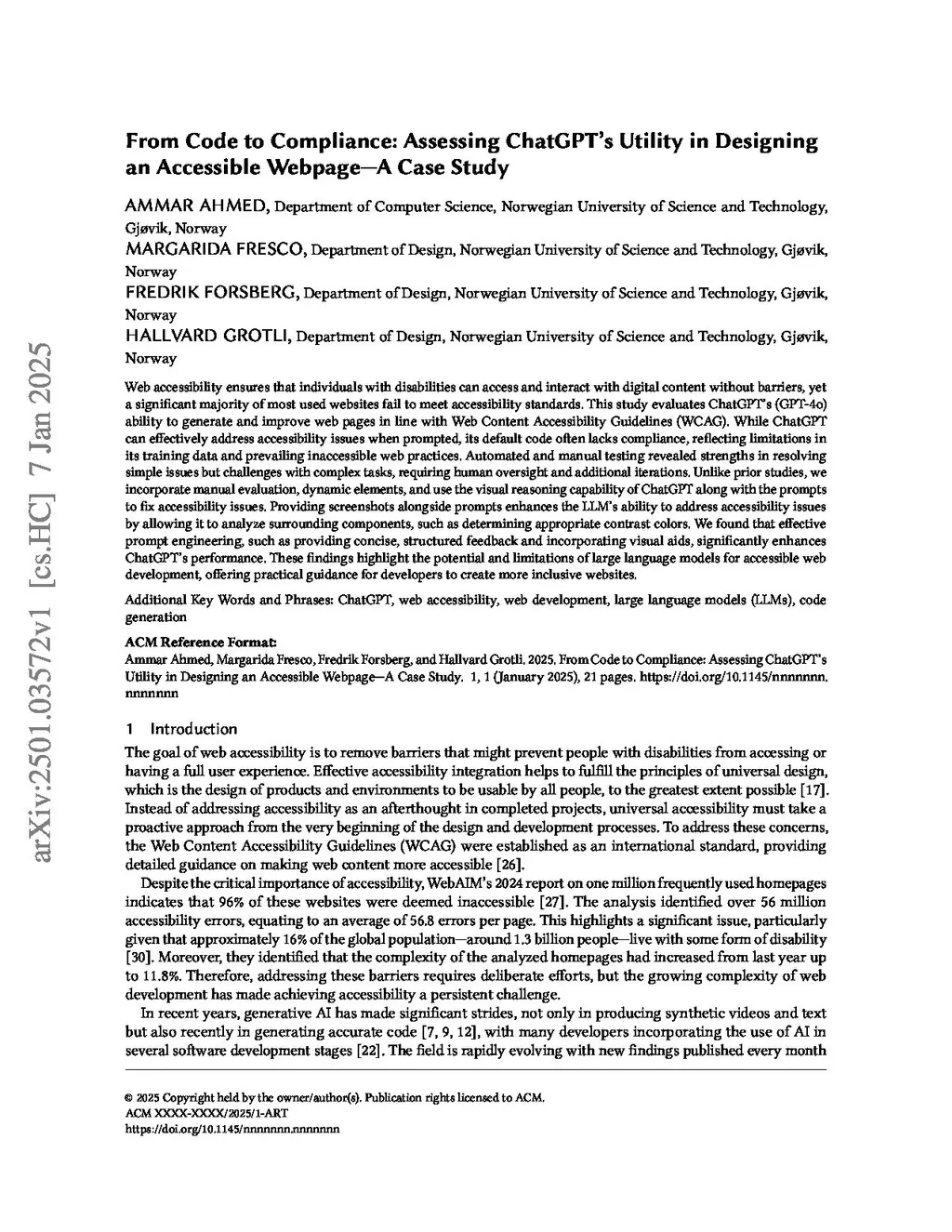 From Code to Compliance: Assessing ChatGPT's Utility in Designing an Accessible Webpage -- A Case Study
