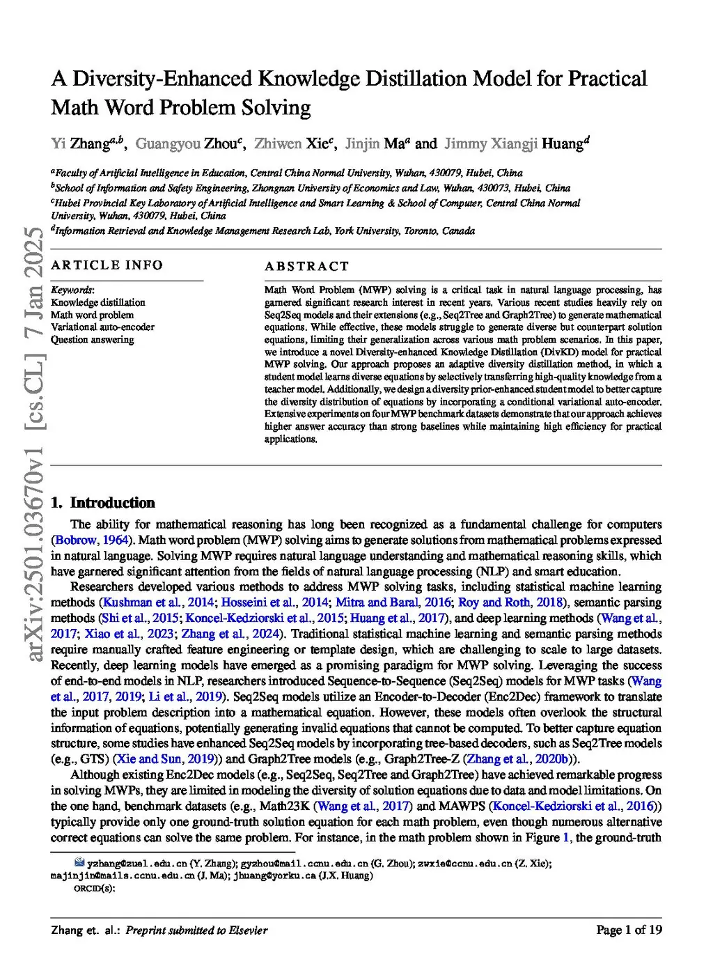 A Diversity-Enhanced Knowledge Distillation Model for Practical Math Word Problem Solving