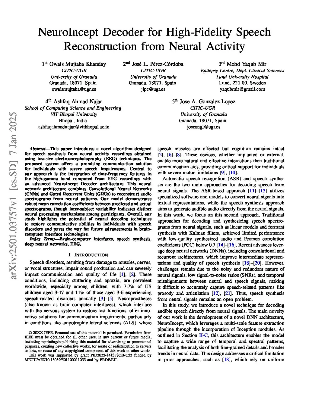 NeuroIncept Decoder for High-Fidelity Speech Reconstruction from Neural Activity