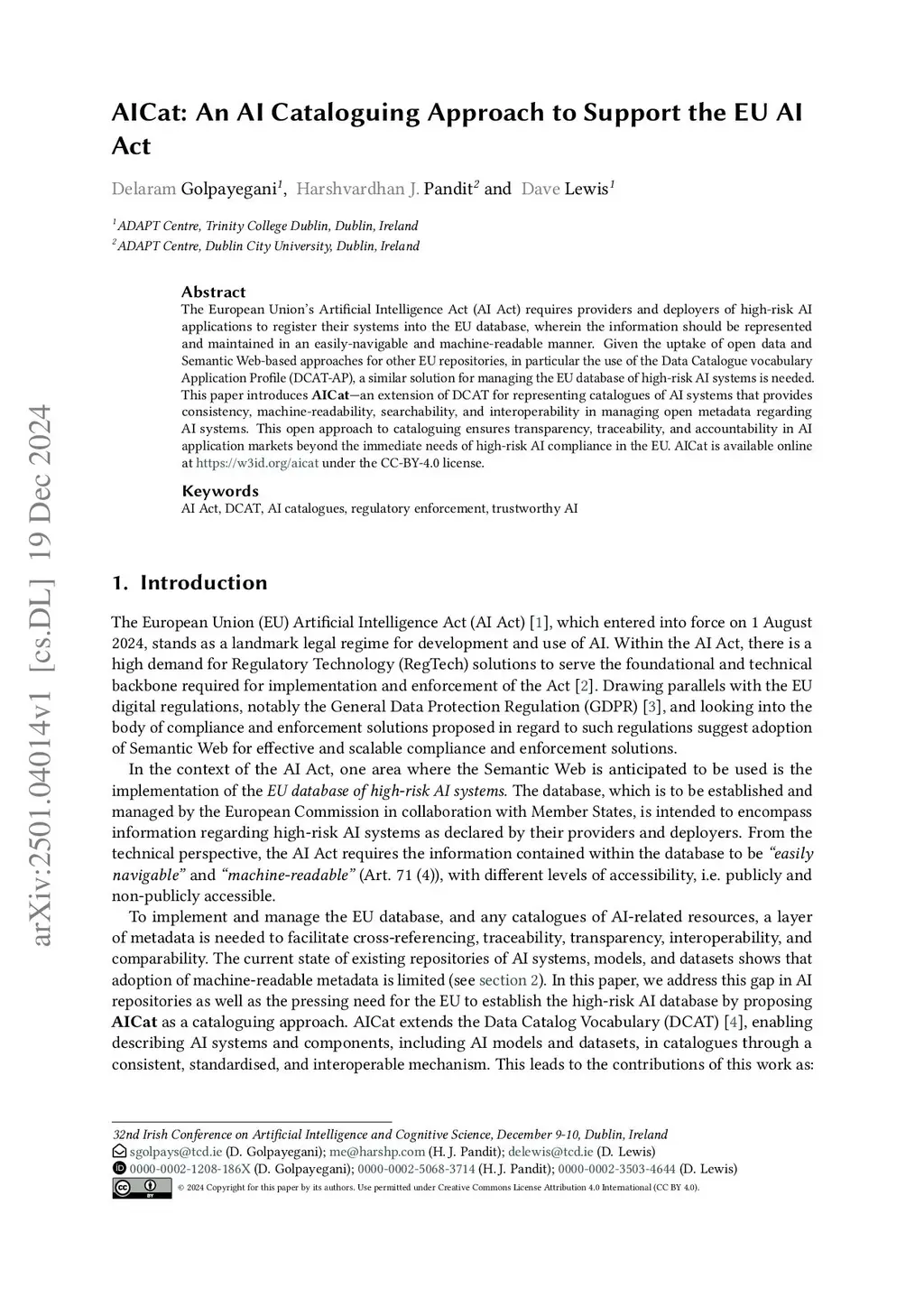 AICat: An AI Cataloguing Approach to Support the EU AI Act