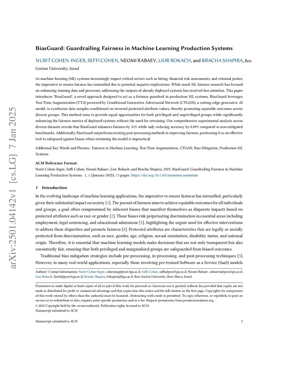 As machine learning (ML) systems increasingly impact critical sectors such as hiring, financial risk assessments, and criminal justice, the imperative to ensure fairness has intensified due to potential negative implications. While much ML fairness research has focused on enhancing training data and processes, addressing the outputs of already deployed systems has received less attention. This paper introduces 'BiasGuard', a novel approach designed to act as a fairness guardrail in production ML systems. BiasGuard leverages Test-Time Augmentation (TTA) powered by Conditional Generative Adversarial Network (CTGAN), a cutting-edge generative AI model, to synthesize data samples conditioned on inverted protected attribute values, thereby promoting equitable outcomes across diverse groups. This method aims to provide equal opportunities for both privileged and unprivileged groups while significantly enhancing the fairness metrics of deployed systems without the need for retraining. Our comprehensive experimental analysis across diverse datasets reveals that BiasGuard enhances fairness by 31% while only reducing accuracy by 0.09% compared to non-mitigated benchmarks. Additionally, BiasGuard outperforms existing post-processing methods in improving fairness, positioning it as an effective tool to safeguard against biases when retraining the model is impractical.
