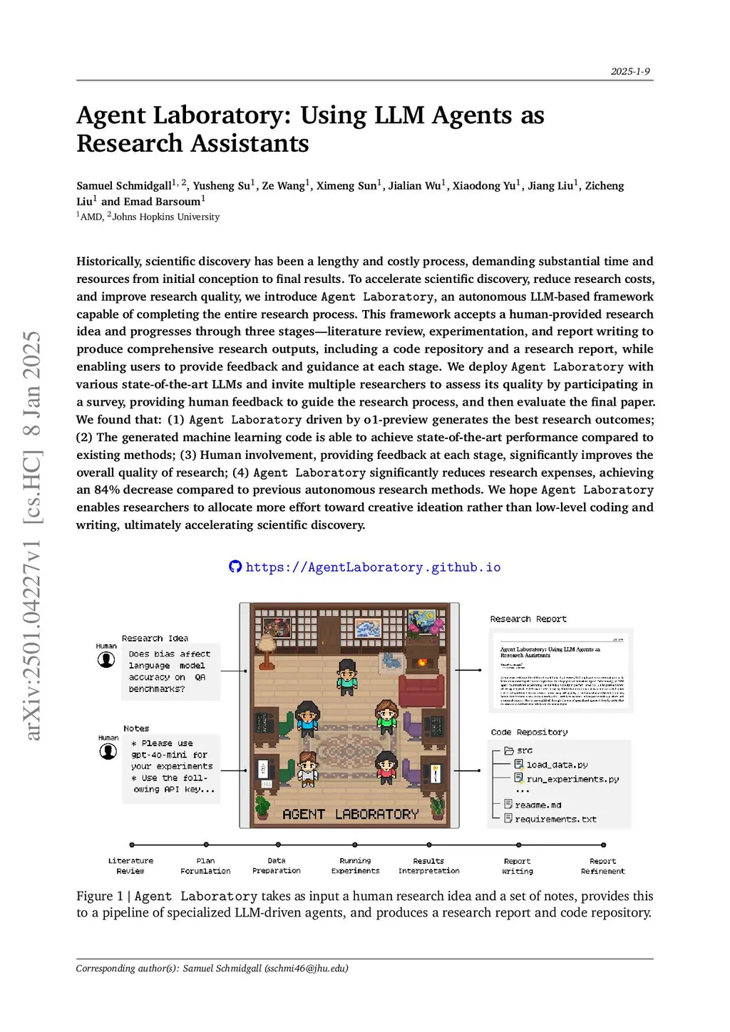 Agent Laboratory: Using LLM Agents as Research Assistants