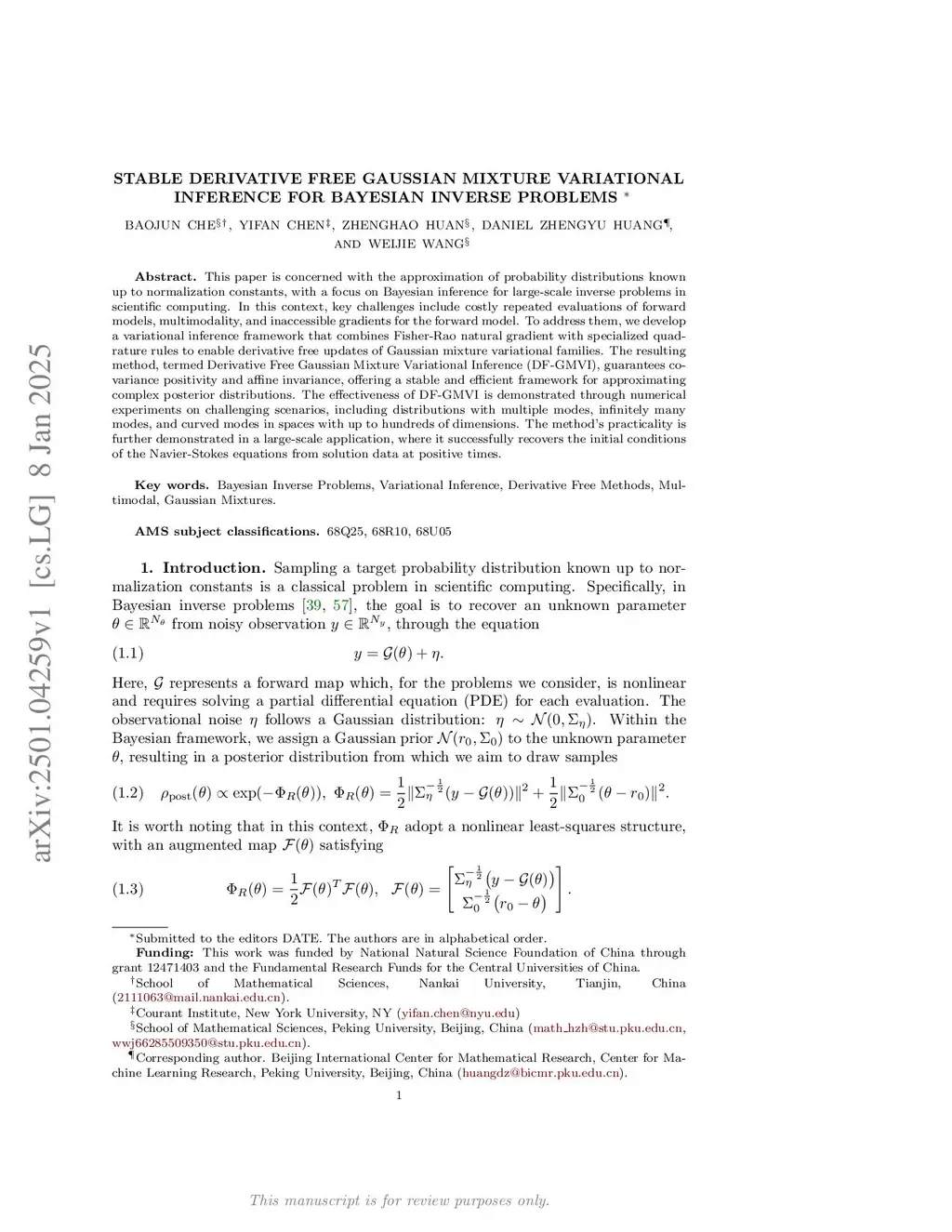 Stable Derivative Free Gaussian Mixture Variational Inference for Bayesian Inverse Problems
