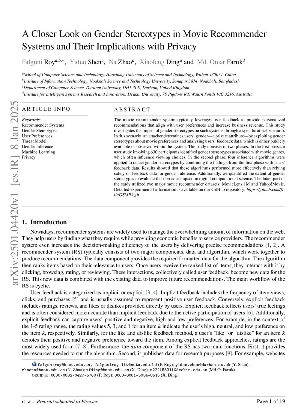 The movie recommender system typically leverages user feedback to provide personalized recommendations that align with user preferences and increase business revenue. This study investigates the impact of gender stereotypes on such systems through a specific attack scenario. In this scenario, an attacker determines users' gender, a private attribute, by exploiting gender stereotypes about movie preferences and analyzing users' feedback data, which is either publicly available or observed within the system. The study consists of two phases. In the first phase, a user study involving 630 participants identified gender stereotypes associated with movie genres, which often influence viewing choices. In the second phase, four inference algorithms were applied to detect gender stereotypes by combining the findings from the first phase with users' feedback data. Results showed that these algorithms performed more effectively than relying solely on feedback data for gender inference. Additionally, we quantified the extent of gender stereotypes to evaluate their broader impact on digital computational science. The latter part of the study utilized two major movie recommender datasets: MovieLens 1M and Yahoo!Movie. Detailed experimental information is available on our GitHub repository:this https URL
