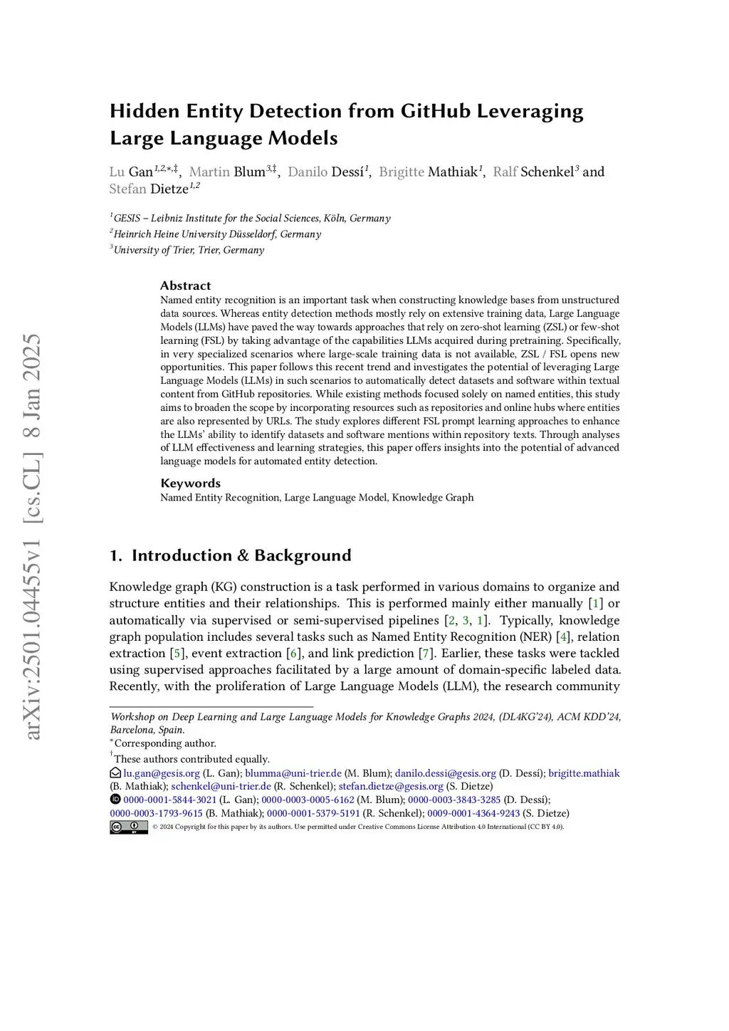 Hidden Entity Detection from GitHub Leveraging Large Language Models
