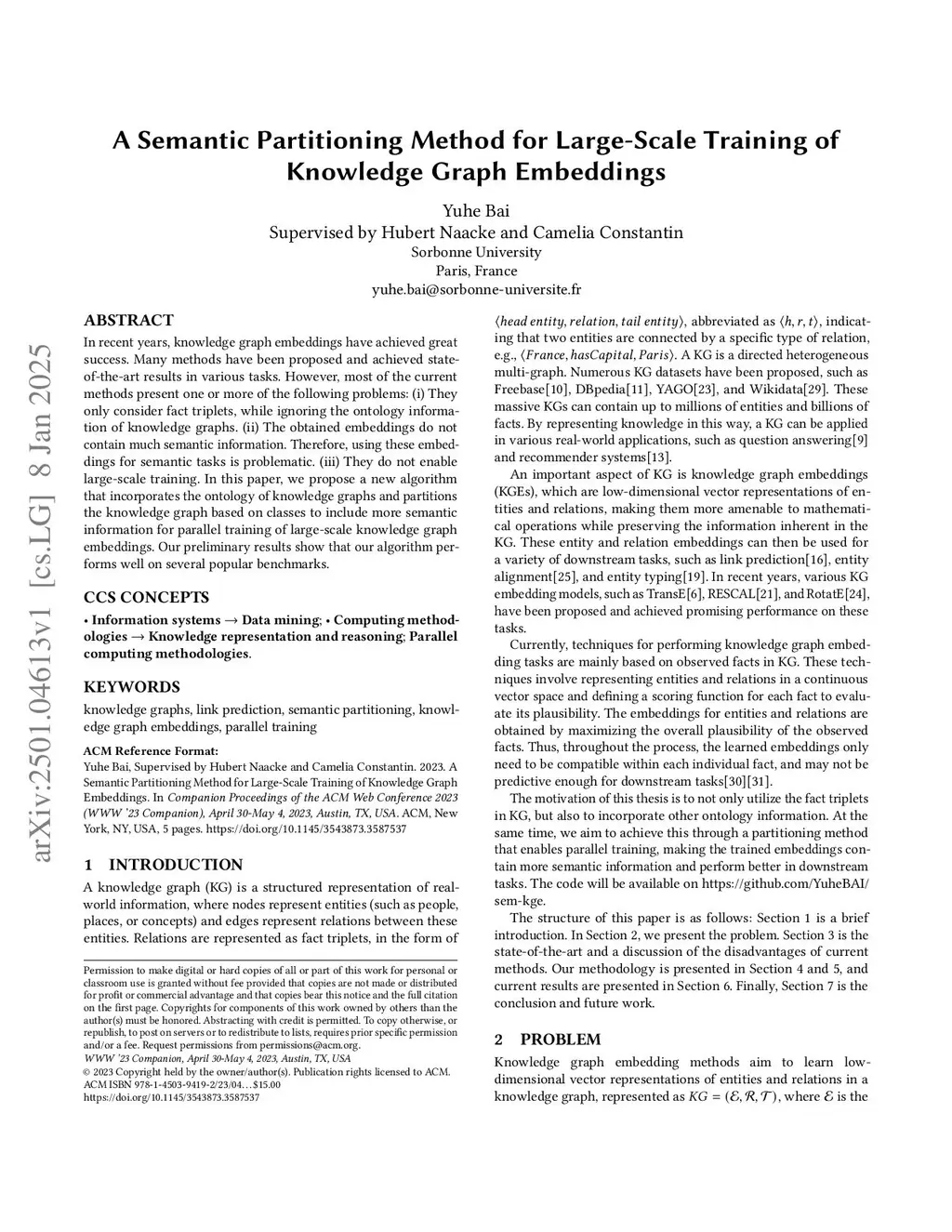 A Semantic Partitioning Method for Large-Scale Training of Knowledge Graph Embeddings