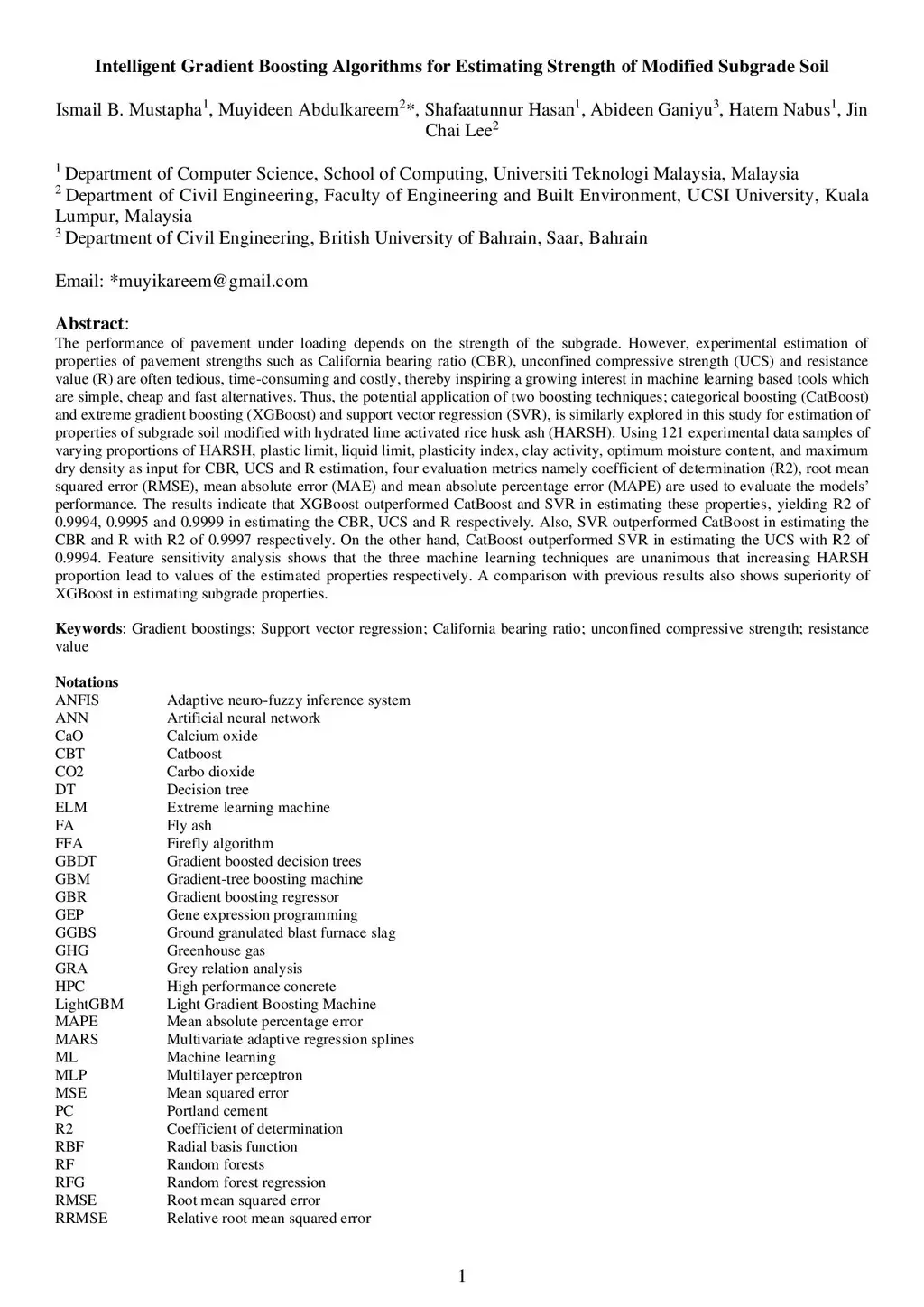Intelligent Gradient Boosting Algorithms for Estimating Strength of Modified Subgrade Soil