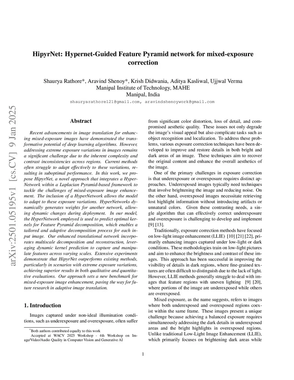 HipyrNet: Hypernet-Guided Feature Pyramid network for mixed-exposure correction