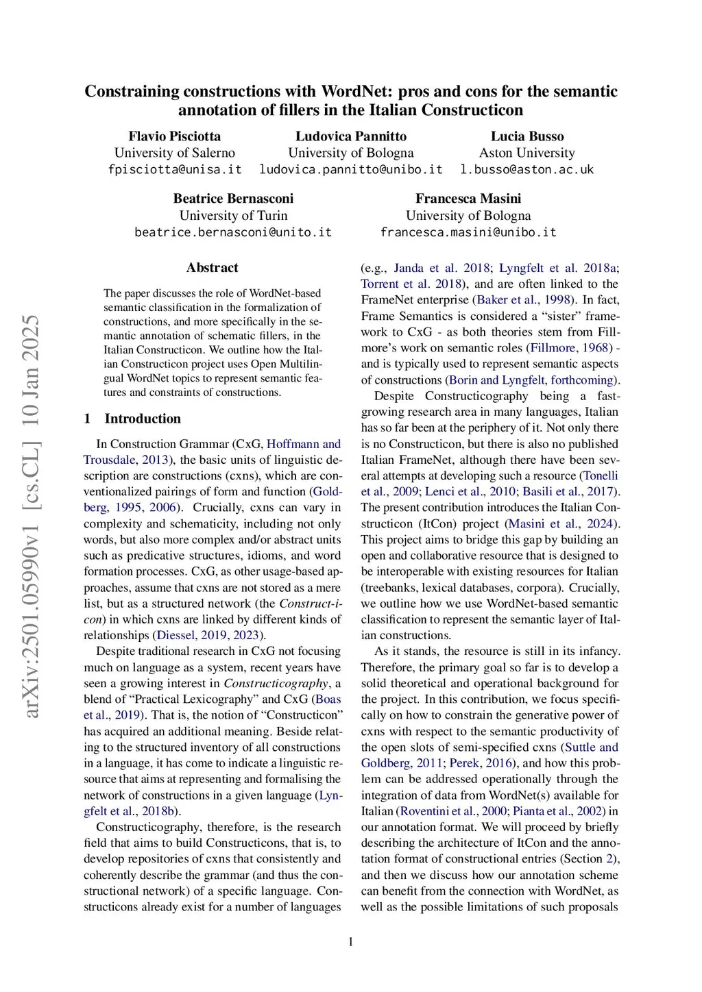 Constraining constructions with WordNet: pros and cons for the semantic annotation of fillers in the Italian Constructicon