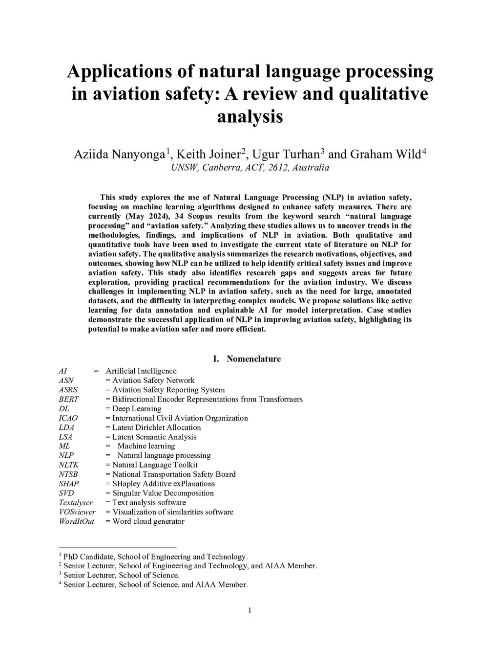 Applications of natural language processing in aviation safety: A review and qualitative analysis
