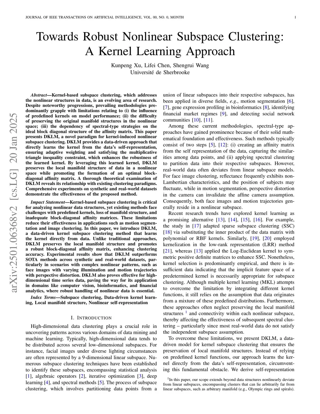 Kernel-based subspace clustering, which addresses the nonlinear structures in data, is an evolving area of research. Despite noteworthy progressions, prevailing methodologies predominantly grapple with limitations relating to (i) the influence of predefined kernels on model performance; (ii) the difficulty of preserving the original manifold structures in the nonlinear space; (iii) the dependency of spectral-type strategies on the ideal block diagonal structure of the affinity matrix. This paper presents DKLM, a novel paradigm for kernel-induced nonlinear subspace clustering. DKLM provides a data-driven approach that directly learns the kernel from the data's self-representation, ensuring adaptive weighting and satisfying the multiplicative triangle inequality constraint, which enhances the robustness of the learned kernel. By leveraging this learned kernel, DKLM preserves the local manifold structure of data in a nonlinear space while promoting the formation of an optimal block-diagonal affinity matrix. A thorough theoretical examination of DKLM reveals its relationship with existing clustering paradigms. Comprehensive experiments on synthetic and real-world datasets demonstrate the effectiveness of the proposed method.