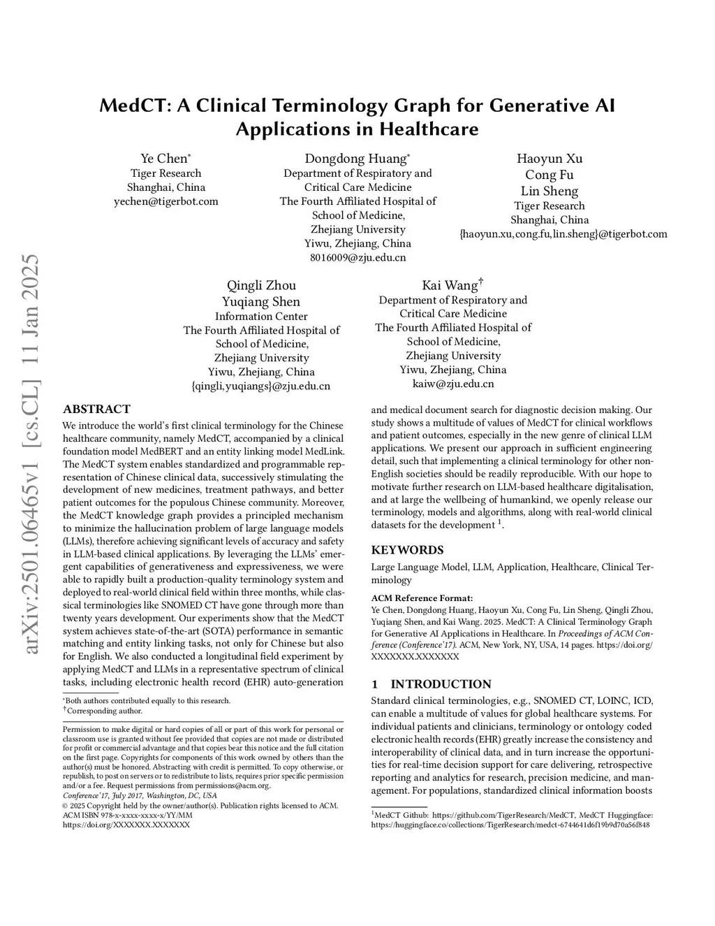 We introduce the world's first clinical terminology for the Chinese healthcare community, namely MedCT, accompanied by a clinical foundation model MedBERT and an entity linking model MedLink. The MedCT system enables standardized and programmable representation of Chinese clinical data, successively stimulating the development of new medicines, treatment pathways, and better patient outcomes for the populous Chinese community. Moreover, the MedCT knowledge graph provides a principled mechanism to minimize the hallucination problem of large language models (LLMs), therefore achieving significant levels of accuracy and safety in LLM-based clinical applications. By leveraging the LLMs' emergent capabilities of generativeness and expressiveness, we were able to rapidly built a production-quality terminology system and deployed to real-world clinical field within three months, while classical terminologies like SNOMED CT have gone through more than twenty years development. Our experiments show that the MedCT system achieves state-of-the-art (SOTA) performance in semantic matching and entity linking tasks, not only for Chinese but also for English. We also conducted a longitudinal field experiment by applying MedCT and LLMs in a representative spectrum of clinical tasks, including electronic health record (EHR) auto-generation and medical document search for diagnostic decision making. Our study shows a multitude of values of MedCT for clinical workflows and patient outcomes, especially in the new genre of clinical LLM applications. We present our approach in sufficient engineering detail, such that implementing a clinical terminology for other non-English societies should be readily reproducible. We openly release our terminology, models and algorithms, along with real-world clinical datasets for the development.