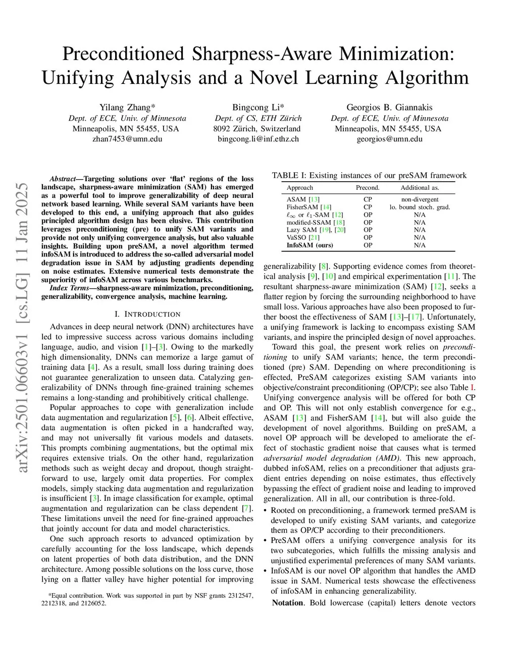 Targeting solutions over `flat' regions of the loss landscape, sharpness-aware minimization (SAM) has emerged as a powerful tool to improve generalizability of deep neural network based learning. While several SAM variants have been developed to this end, a unifying approach that also guides principled algorithm design has been elusive. This contribution leverages preconditioning (pre) to unify SAM variants and provide not only unifying convergence analysis, but also valuable insights. Building upon preSAM, a novel algorithm termed infoSAM is introduced to address the so-called adversarial model degradation issue in SAM by adjusting gradients depending on noise estimates. Extensive numerical tests demonstrate the superiority of infoSAM across various benchmarks.