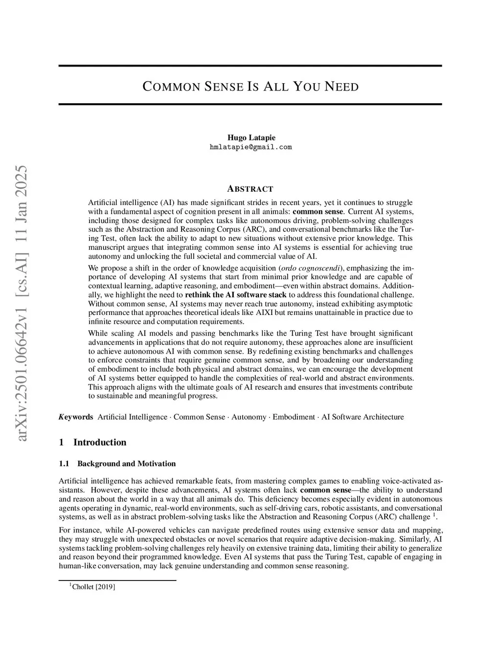 Common Sense Is All You Need