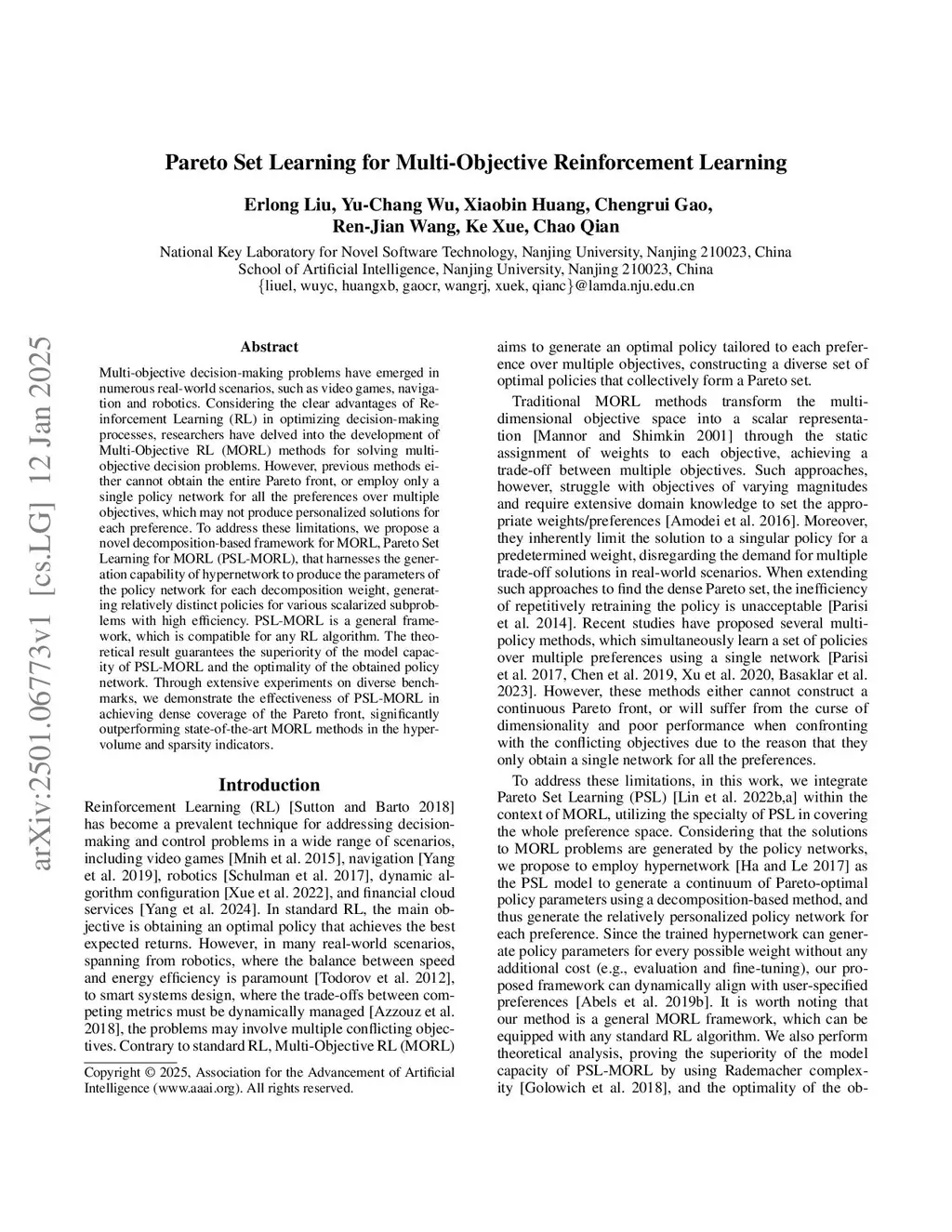 Pareto Set Learning for Multi-Objective Reinforcement Learning