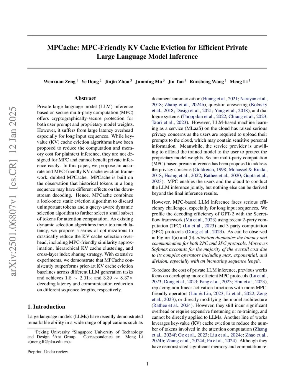 MPCache: MPC-Friendly KV Cache Eviction for Efficient Private LLM Inference