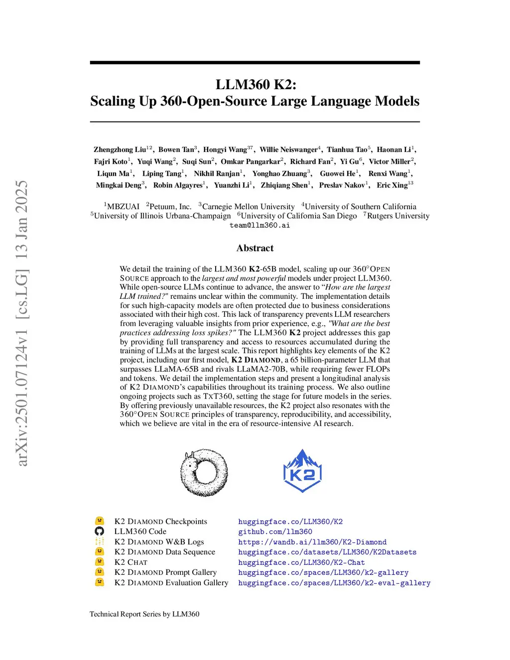 We detail the training of the LLM360 K2-65B model, scaling up our 360-degree OPEN SOURCE approach to the largest and most powerful models under project LLM360. While open-source LLMs continue to advance, the answer to "How are the largest LLMs trained?" remains unclear within the community. The implementation details for such high-capacity models are often protected due to business considerations associated with their high cost. This lack of transparency prevents LLM researchers from leveraging valuable insights from prior experience, e.g., "What are the best practices for addressing loss spikes?" The LLM360 K2 project addresses this gap by providing full transparency and access to resources accumulated during the training of LLMs at the largest scale. This report highlights key elements of the K2 project, including our first model, K2 DIAMOND, a 65 billion-parameter LLM that surpasses LLaMA-65B and rivals LLaMA2-70B, while requiring fewer FLOPs and tokens. We detail the implementation steps and present a longitudinal analysis of K2 DIAMOND's capabilities throughout its training process. We also outline ongoing projects such as TXT360, setting the stage for future models in the series. By offering previously unavailable resources, the K2 project also resonates with the 360-degree OPEN SOURCE principles of transparency, reproducibility, and accessibility, which we believe are vital in the era of resource-intensive AI research.