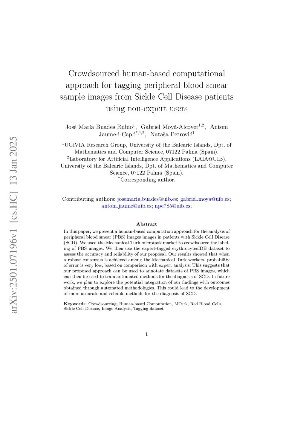 In this paper, we present a human-based computation approach for the analysis of peripheral blood smear (PBS) images images in patients with Sickle Cell Disease (SCD). We used the Mechanical Turk microtask market to crowdsource the labeling of PBS images. We then use the expert-tagged erythrocytesIDB dataset to assess the accuracy and reliability of our proposal. Our results showed that when a robust consensus is achieved among the Mechanical Turk workers, probability of error is very low, based on comparison with expert analysis. This suggests that our proposed approach can be used to annotate datasets of PBS images, which can then be used to train automated methods for the diagnosis of SCD. In future work, we plan to explore the potential integration of our findings with outcomes obtained through automated methodologies. This could lead to the development of more accurate and reliable methods for the diagnosis of SCD