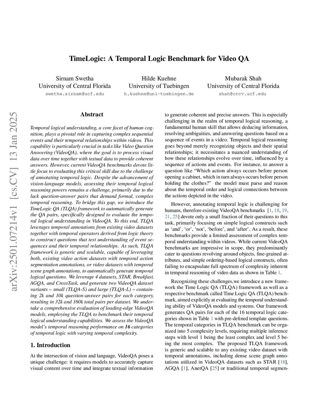 Temporal logical understanding, a core facet of human cognition, plays a pivotal role in capturing complex sequential events and their temporal relationships within videos. This capability is particularly crucial in tasks like Video Question Answering (VideoQA), where the goal is to process visual data over time together with textual data to provide coherent answers. However, current VideoQA benchmarks devote little focus to evaluating this critical skill due to the challenge of annotating temporal logic. Despite the advancement of vision-language models, assessing their temporal logical reasoning powers remains a challenge, primarily due to the lack QA pairs that demand formal, complex temporal reasoning. To bridge this gap, we introduce the TimeLogic QA (TLQA) framework to automatically generate the QA pairs, specifically designed to evaluate the temporal logical understanding. To this end, TLQA leverages temporal annotations from existing video datasets together with temporal operators derived from logic theory to construct questions that test understanding of event sequences and their temporal relationships. TLQA framework is generic and scalable, capable of leveraging both, existing video action datasets with temporal action segmentation annotations, or video datasets with temporal scene graph annotations, to automatically generate temporal logical questions. We leverage 4 datasets, STAR, Breakfast, AGQA, and CrossTask, and generate two VideoQA dataset variants - small (TLQA-S) and large (TLQA-L) - containing 2k and 10k QA pairs for each category, resulting in 32k and 160k total pairs per dataset. We undertake a comprehensive evaluation of leading-edge VideoQA models, employing the TLQA to benchmark their temporal logical understanding capabilities. We assess the VideoQA model's temporal reasoning performance on 16 categories of temporal logic with varying temporal complexity.