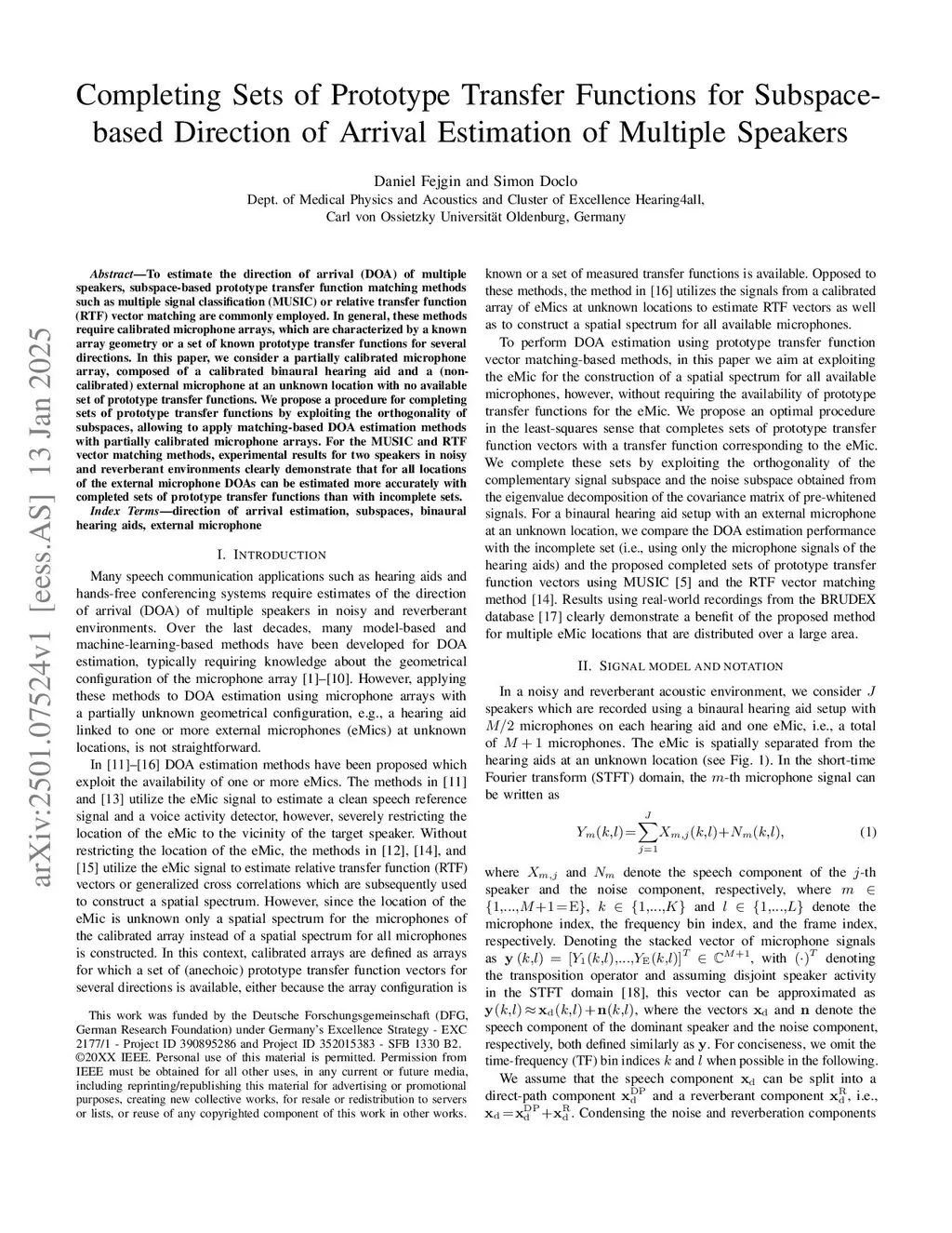 To estimate the direction of arrival (DOA) of multiple speakers, subspace-based prototype transfer function matching methods such as multiple signal classification (MUSIC) or relative transfer function (RTF) vector matching are commonly employed. In general, these methods require calibrated microphone arrays, which are characterized by a known array geometry or a set of known prototype transfer functions for several directions. In this paper, we consider a partially calibrated microphone array, composed of a calibrated binaural hearing aid and a (non-calibrated) external microphone at an unknown location with no available set of prototype transfer functions. We propose a procedure for completing sets of prototype transfer functions by exploiting the orthogonality of subspaces, allowing to apply matching-based DOA estimation methods with partially calibrated microphone arrays. For the MUSIC and RTF vector matching methods, experimental results for two speakers in noisy and reverberant environments clearly demonstrate that for all locations of the external microphone DOAs can be estimated more accurately with completed sets of prototype transfer functions than with incomplete sets.\c{opyright}20XX IEEE. Personal use of this material is permitted. Permission from IEEE must be obtained for all other uses, in any current or future media, including reprinting/republishing this material for advertising or promotional purposes, creating new collective works, for resale or redistribution to servers or lists, or reuse of any copyrighted component of this work in other works.