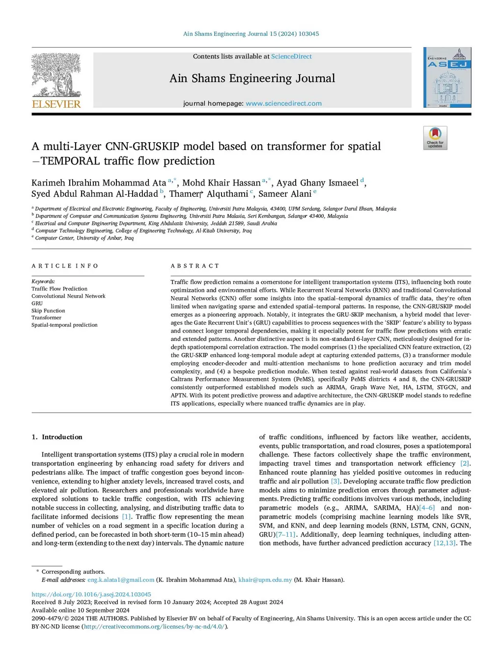 A Multi-Layer CNN-GRUSKIP model based on transformer for spatial TEMPORAL traffic flow prediction