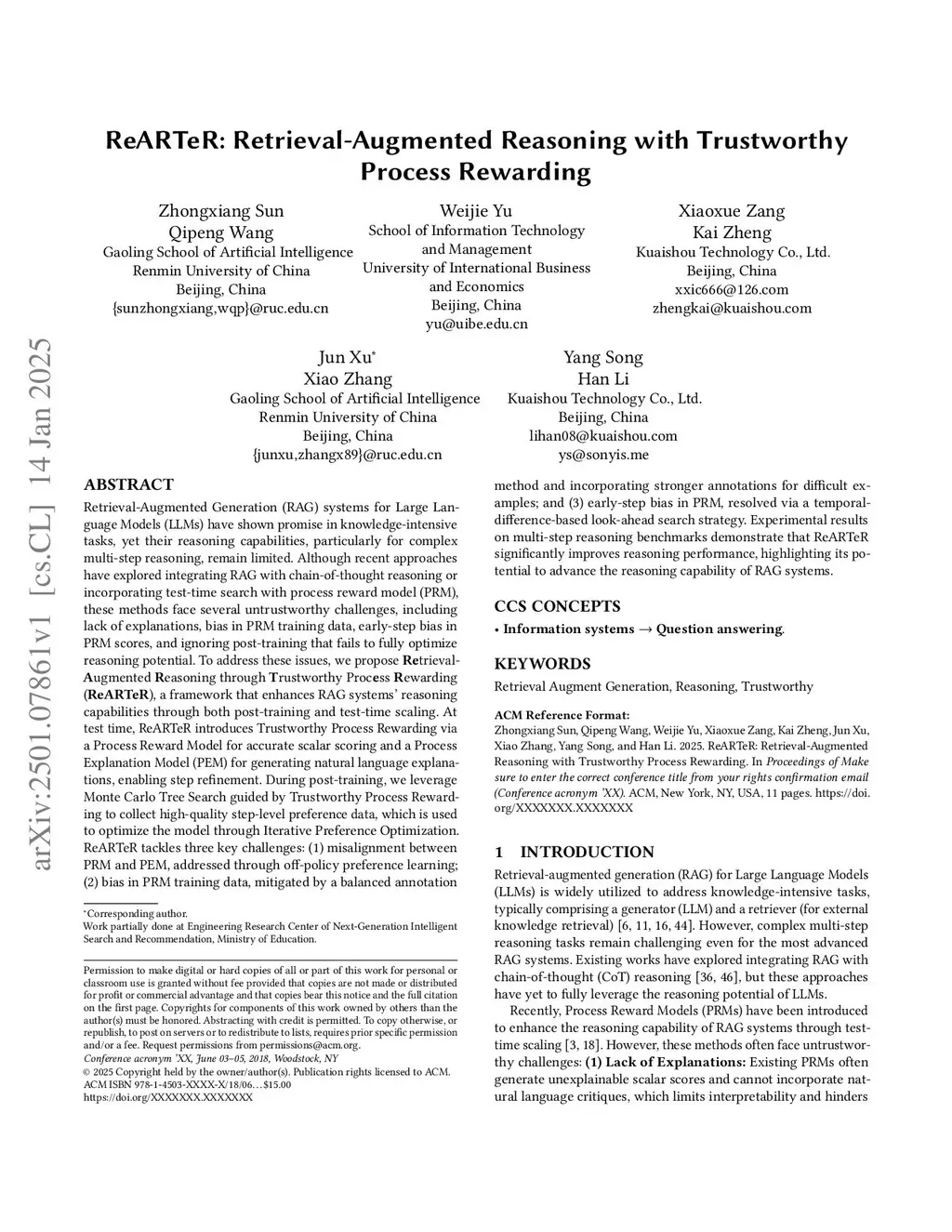 ReARTeR: Retrieval-Augmented Reasoning with Trustworthy Process Rewarding