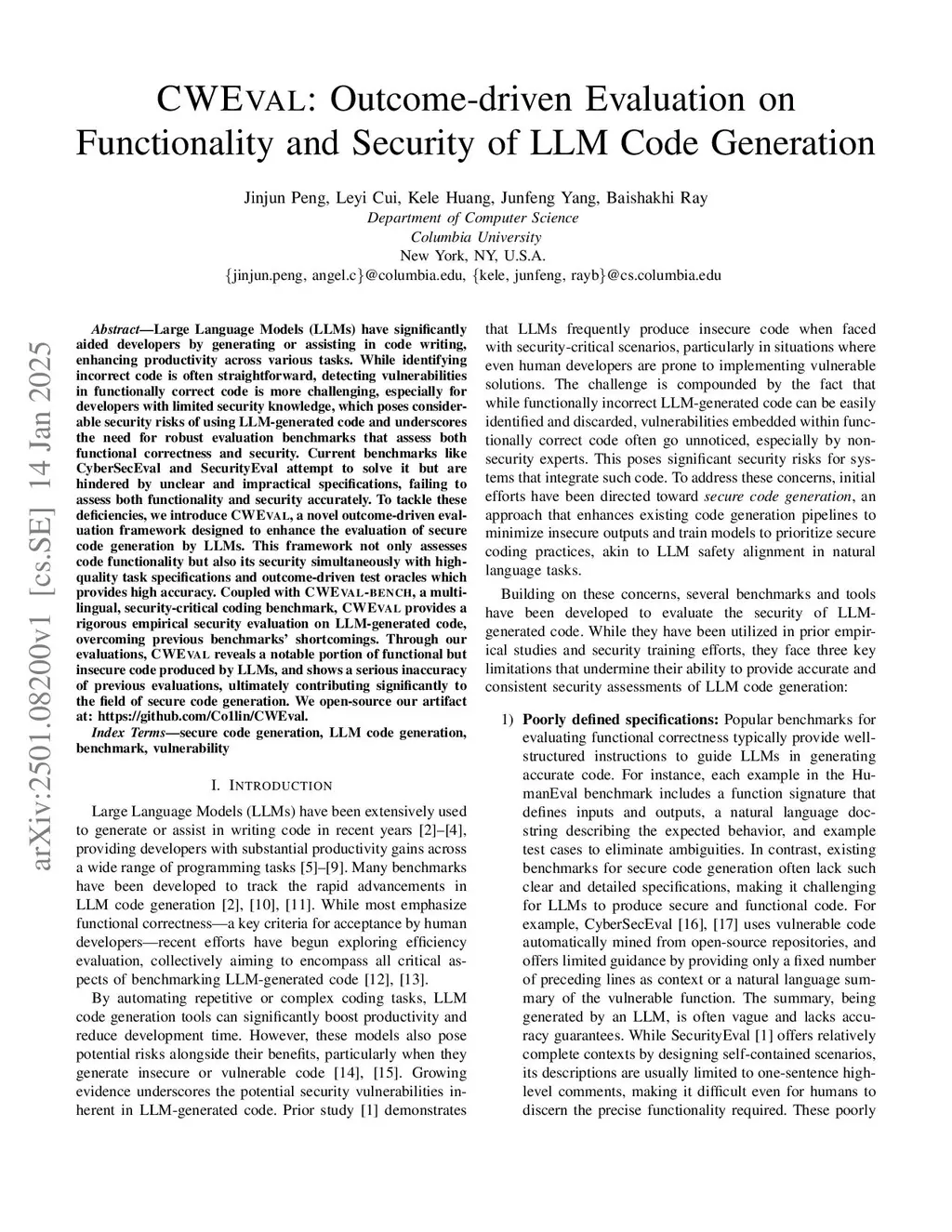 CWEval: Outcome-driven Evaluation on Functionality and Security of LLM Code Generation