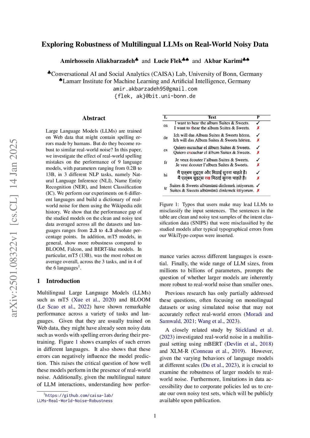 Large Language Models (LLMs) are trained on Web data that might contain spelling errors made by humans. But do they become robust to similar real-world noise? In this paper, we investigate the effect of real-world spelling mistakes on the performance of 9 language models, with parameters ranging from 0.2B to 13B, in 3 different NLP tasks, namely Natural Language Inference (NLI), Name Entity Recognition (NER), and Intent Classification (IC). We perform our experiments on 6 different languages and build a dictionary of real-world noise for them using the Wikipedia edit history. We show that the performance gap of the studied models on the clean and noisy test data averaged across all the datasets and languages ranges from 2.3 to 4.3 absolute percentage points. In addition, mT5 models, in general, show more robustness compared to BLOOM, Falcon, and BERT-like models. In particular, mT5 (13B), was the most robust on average overall, across the 3 tasks, and in 4 of the 6 languages.